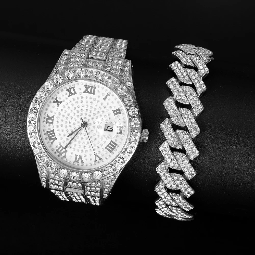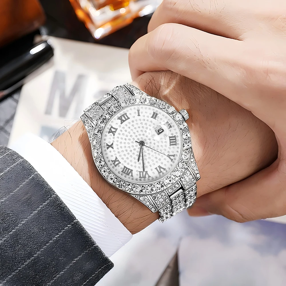 1-piece quartz watch, stylish and luxurious hip-hop style, suitable for men and women,ideal as a gift for friends,perfect for