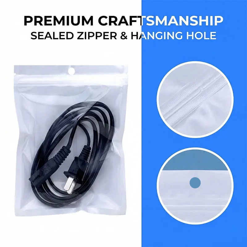 100pcs Reusable Clear Ziplock Bags Transparent Self Sealing Plastic Zip Packaging Pouch for Food Nuts Jewelry Cable Small Parts