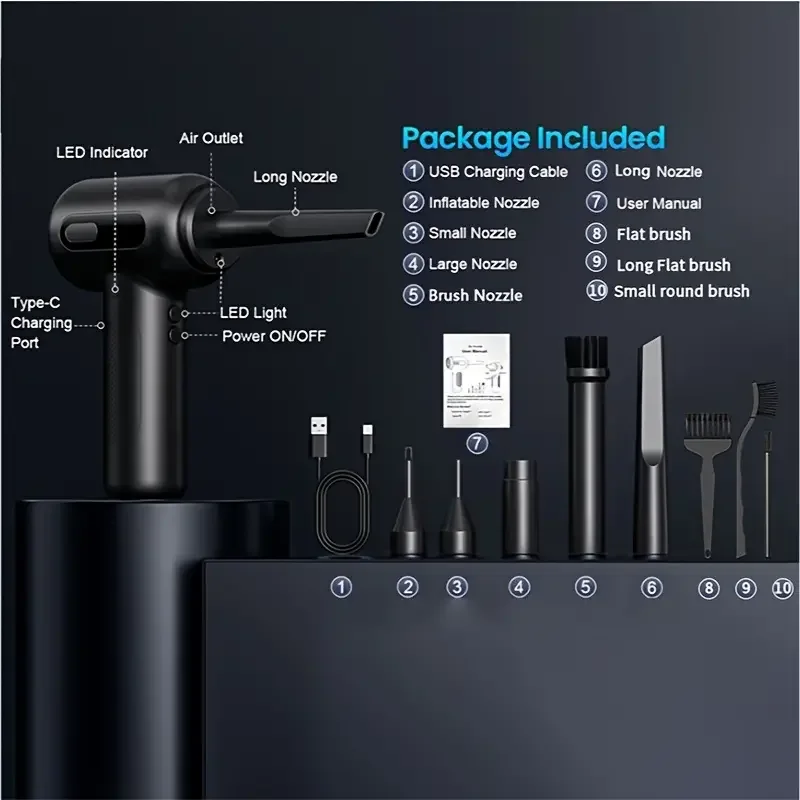 2 In 1 Compressed Air Duster Cordless Dust Blower Rechargeable Blow and Suck Vacuum Cleaner Electric For Computer Keyboard Sofa