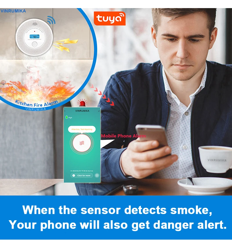 Mainly well used in the place of carbon monoxide and fire place, well guarantee personal safety. It can work with Tuya or Smart life APP, you can check and receive the alarms through the APP even you are far away from home, no need any gateway, just connect with house WiFi. A perfect item for protecting your fanily from the dangers of Co poisoning and Fire.