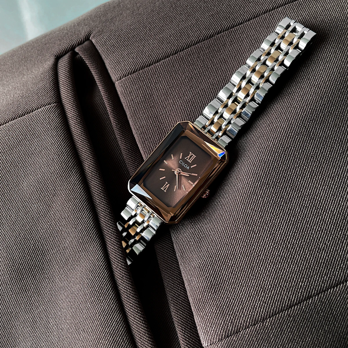 ,Pointer style time display, 30M waterproof, stable quality, rectangular dial, niche watch, suitable for women, jewelry decoration, quartz movement, jewelry buckle, chain strap style