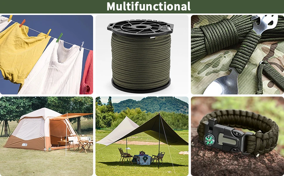 Can be used as paracord bracelet rope, outdoor survival rope, tent rope, clothesline, hand-made DIY, bundled goods, protective nets, hanging flower pots etc. Great for camping and hiking use. can be placed in a backpack, car, as emergency supplies.Easy to carry.