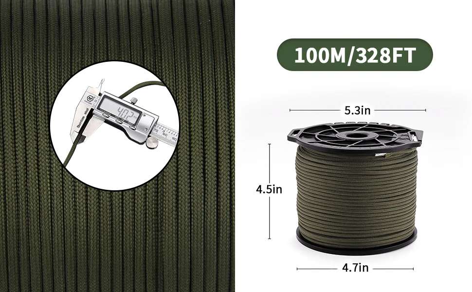 Length:100M/328FT, Thickness: 5/32-inches (4mm), 9 Strand Parachute Spool Cord