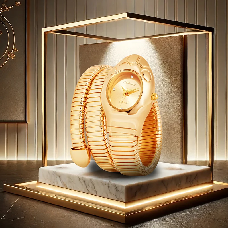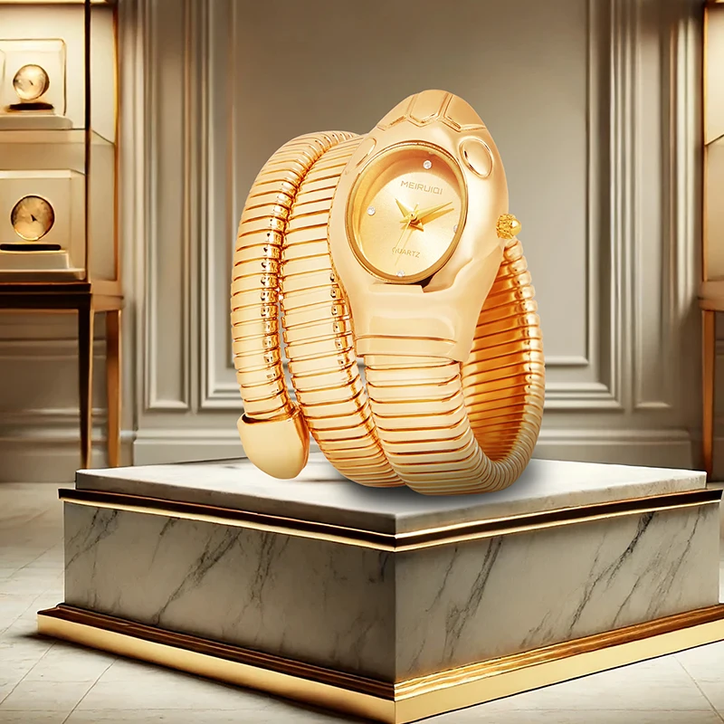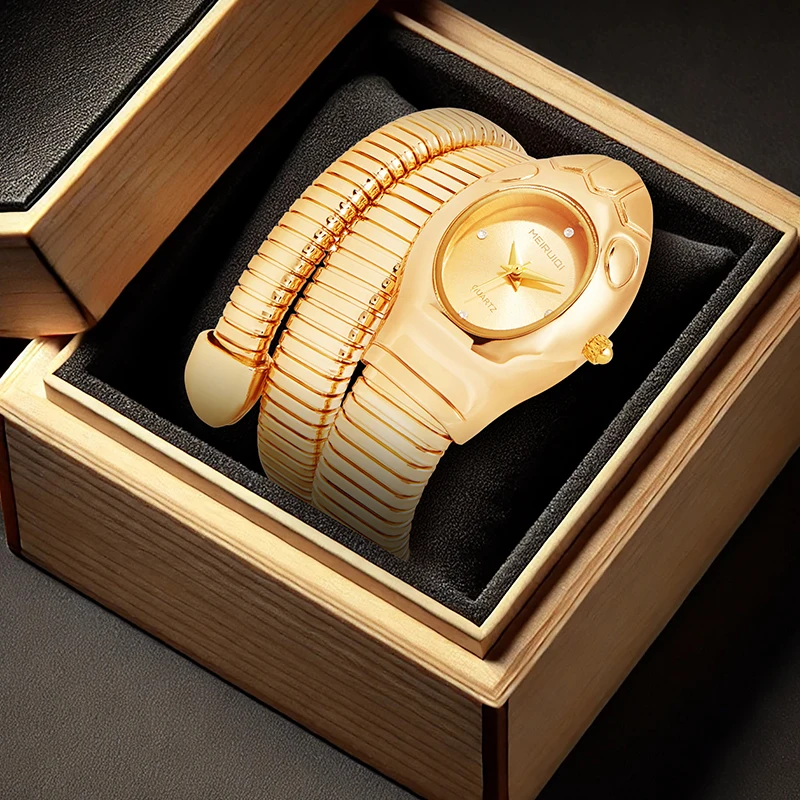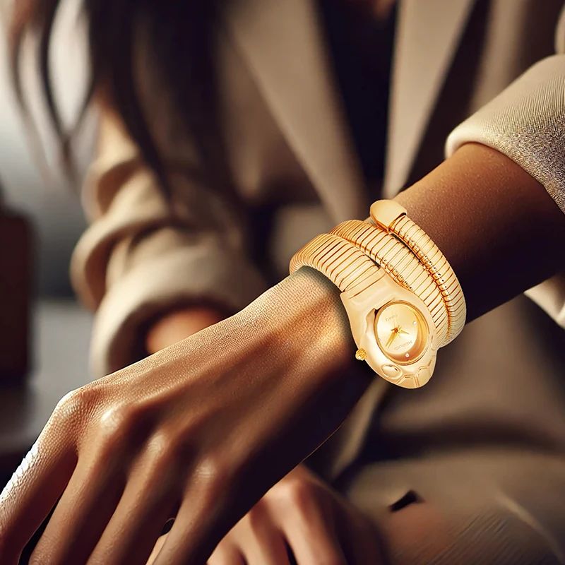 A women’s gold fashionable and elegant boutique snake-pattern quartz watch