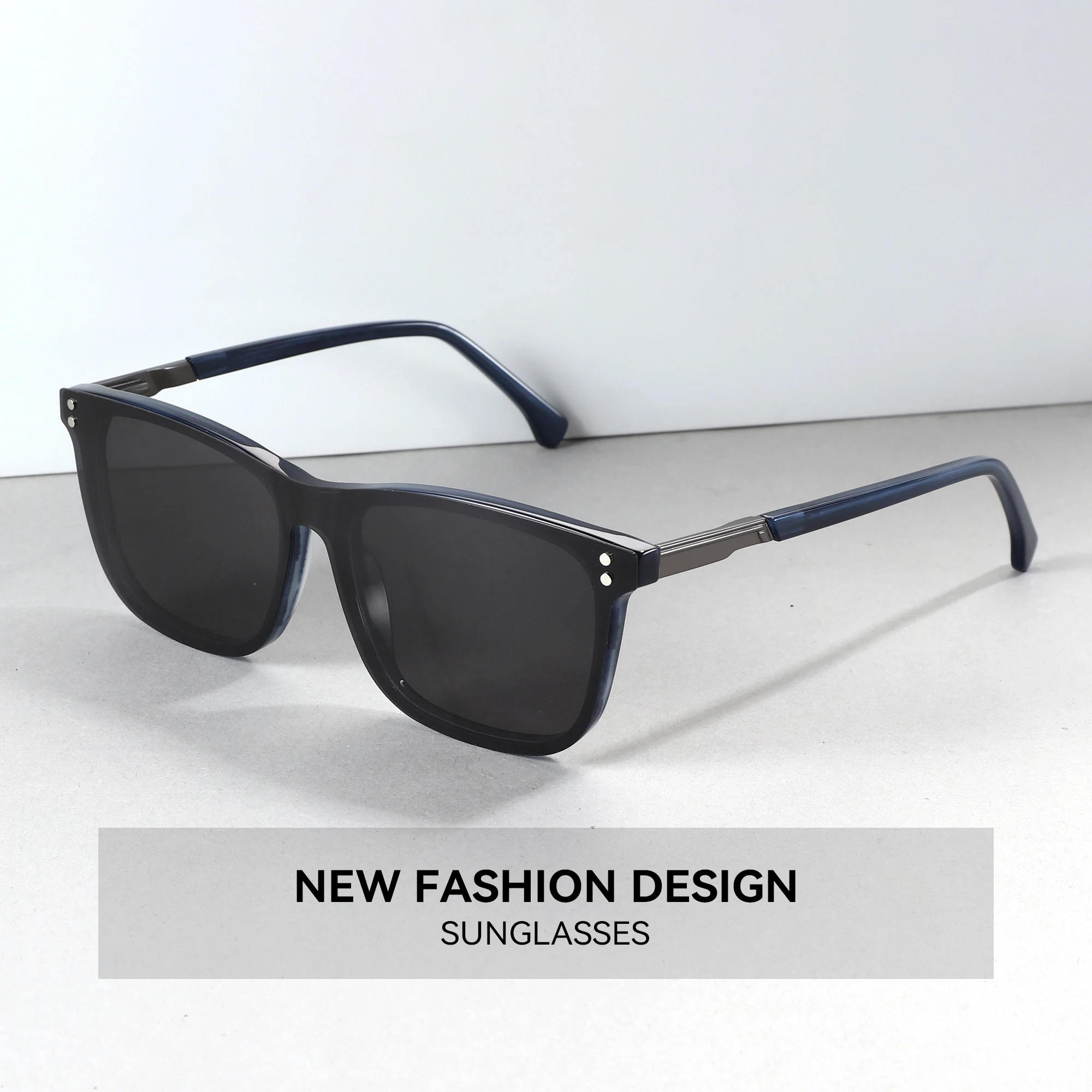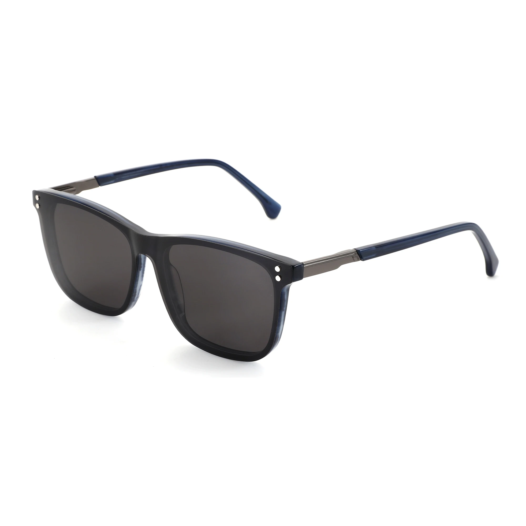BLUEMOKY Mens Square Prescription Glasses with Clip On Sunglasses Acetate Frame for Driving