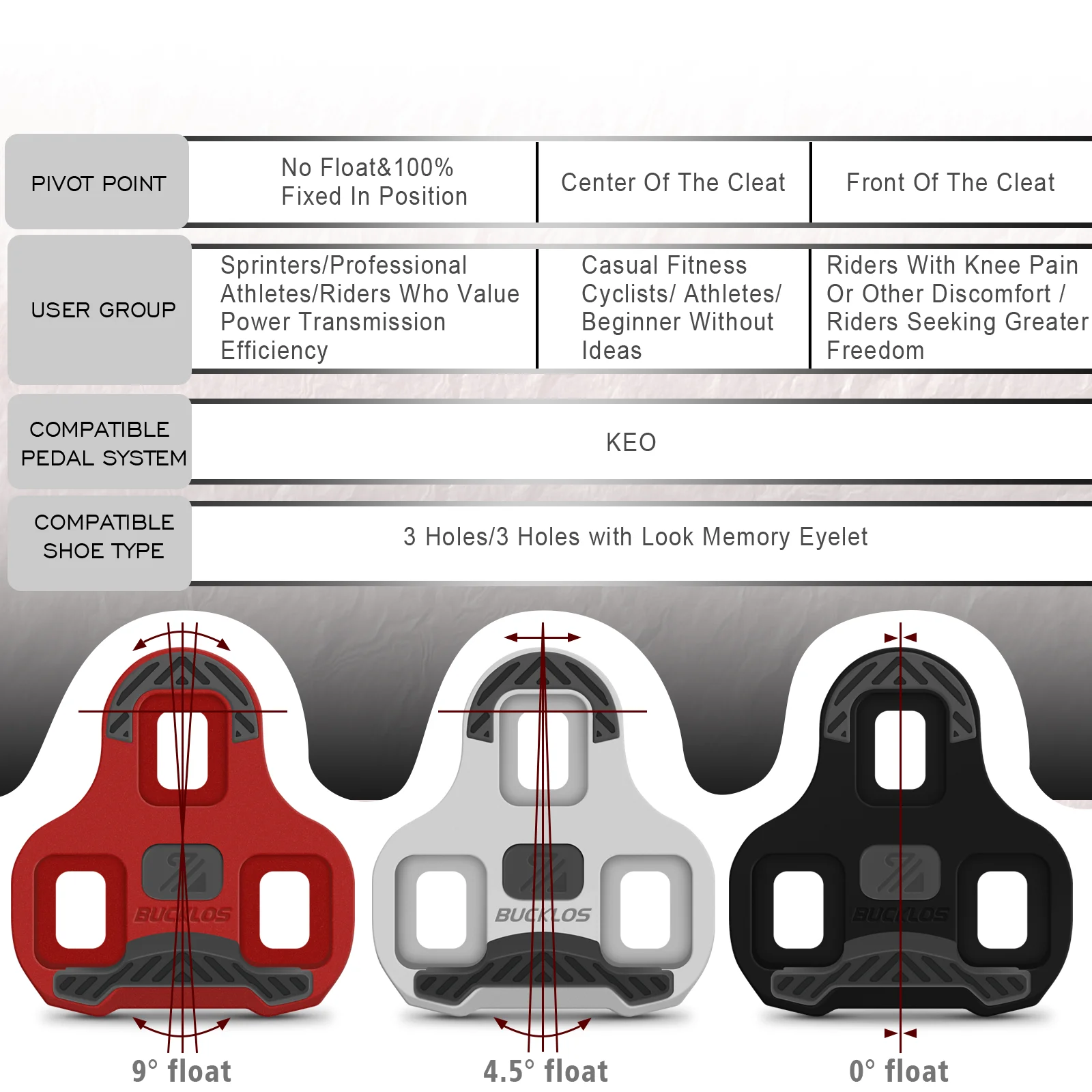 BUCKLOS Bike Cleats for LOOK KEO System Road Bicycle Self-locking Pedal Cleat Anti Slip Wear-resistant TPU Cycling Shoes Cleats