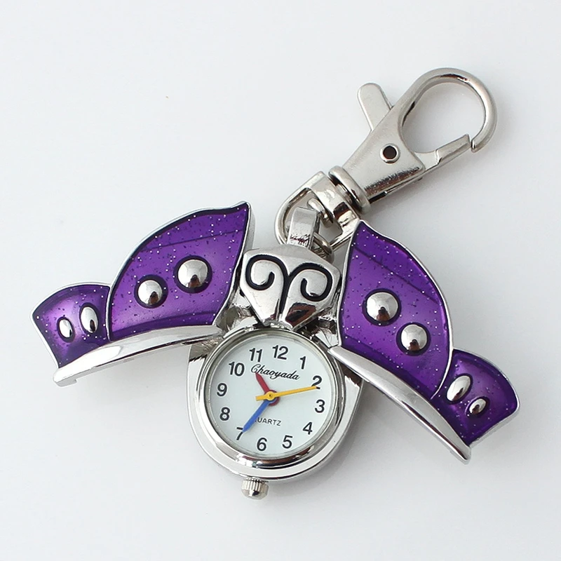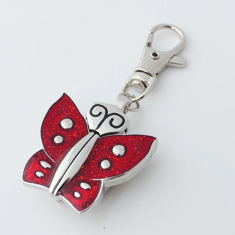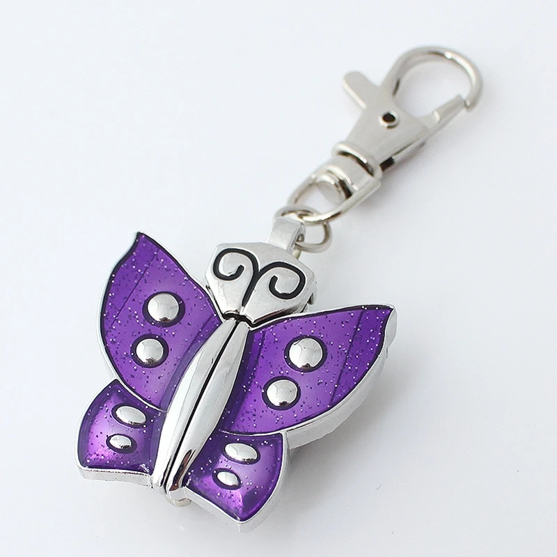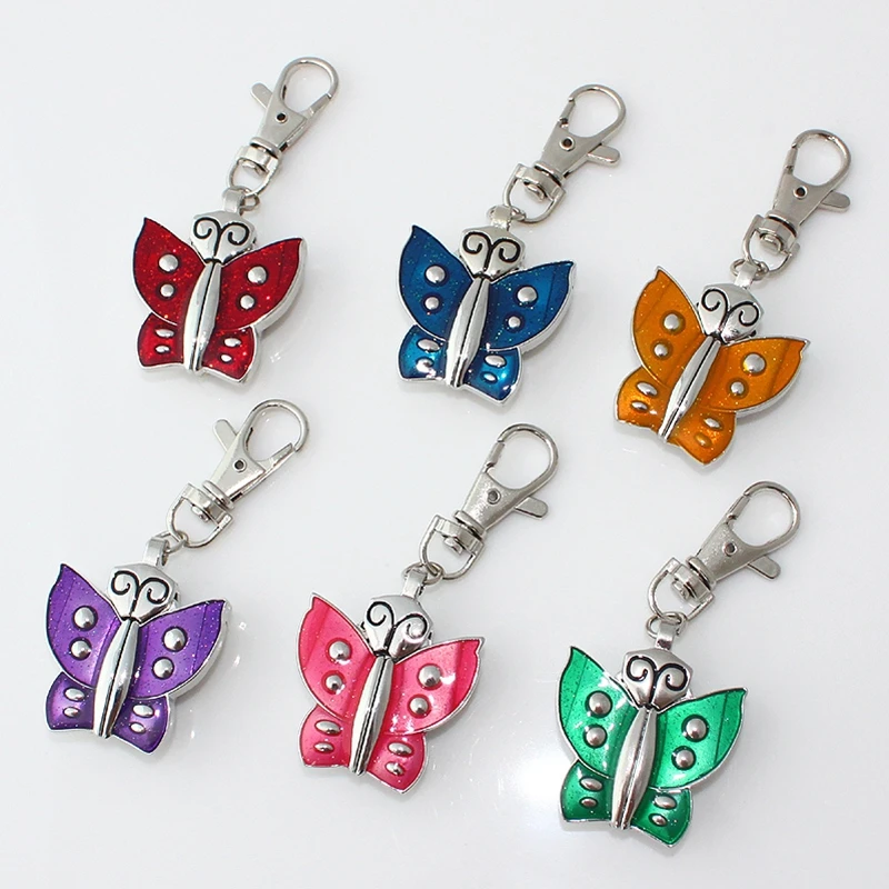 Butterfly Fashion Girl Pocket Pendant Keyring Watch with Chain Key Ring And Gift Bag – Clip-On Watch for Girls