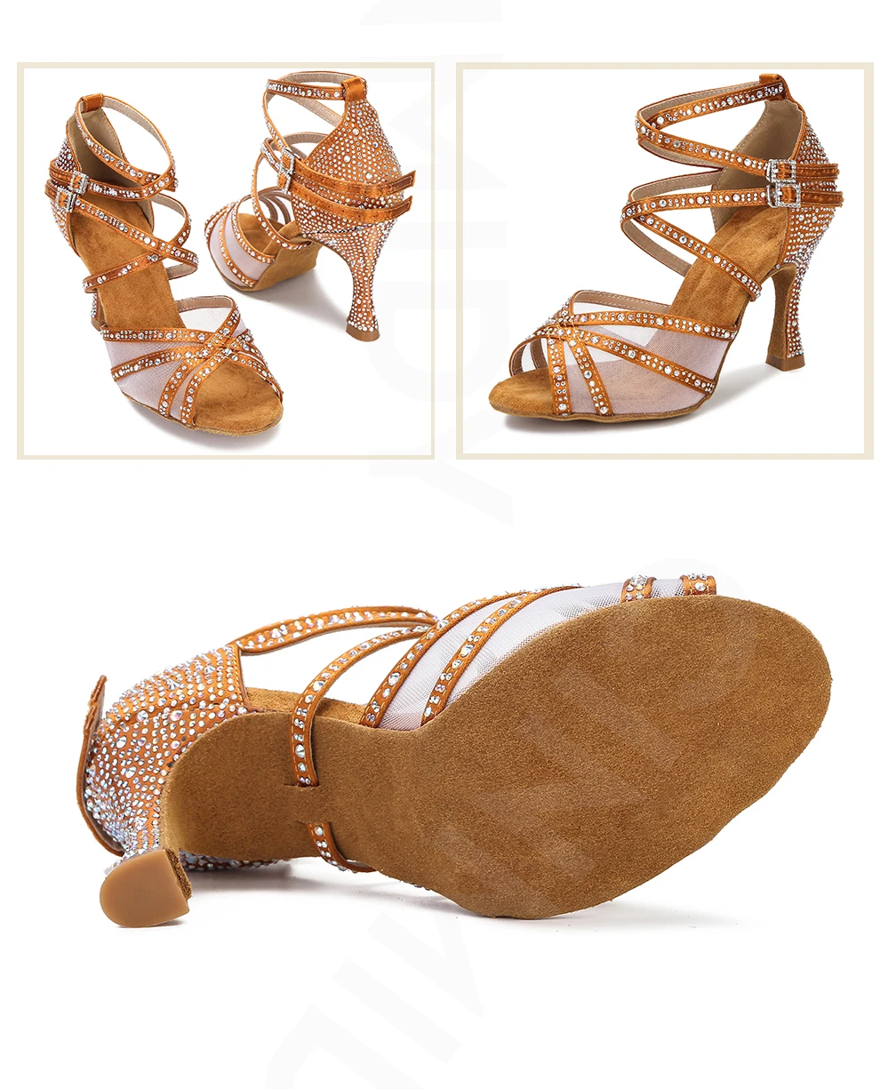 This dance shoe is very fashionable and elegant all-match Latin dance shoe,Wearing dancing is not tired, non-slip, wear-resistant and comfortable, I believe you will fall in love with this high-heel soft-soled dance shoes.