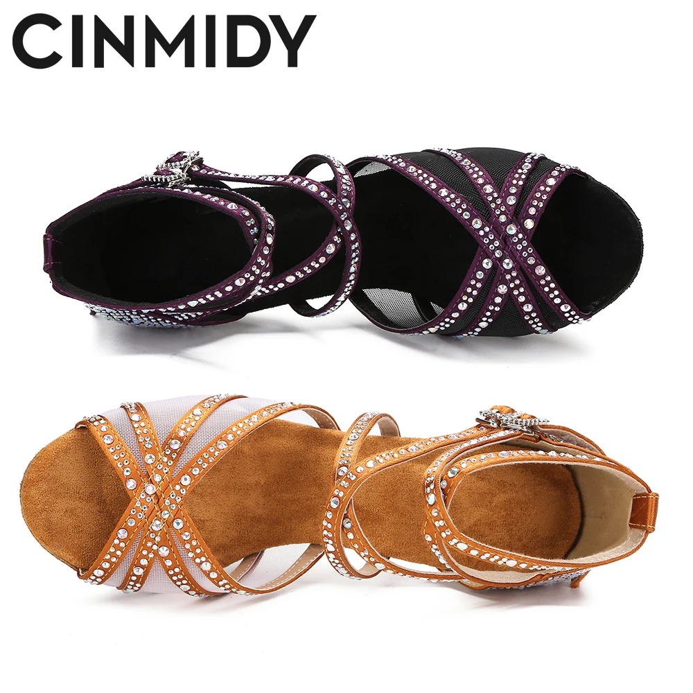 CINMIDY Women Dance Shoes Mesh Latin Dance Shoes Ballroom Dance Sneakers Silk Satin Wedding Shoes Soft Bottom Women’s Sandals