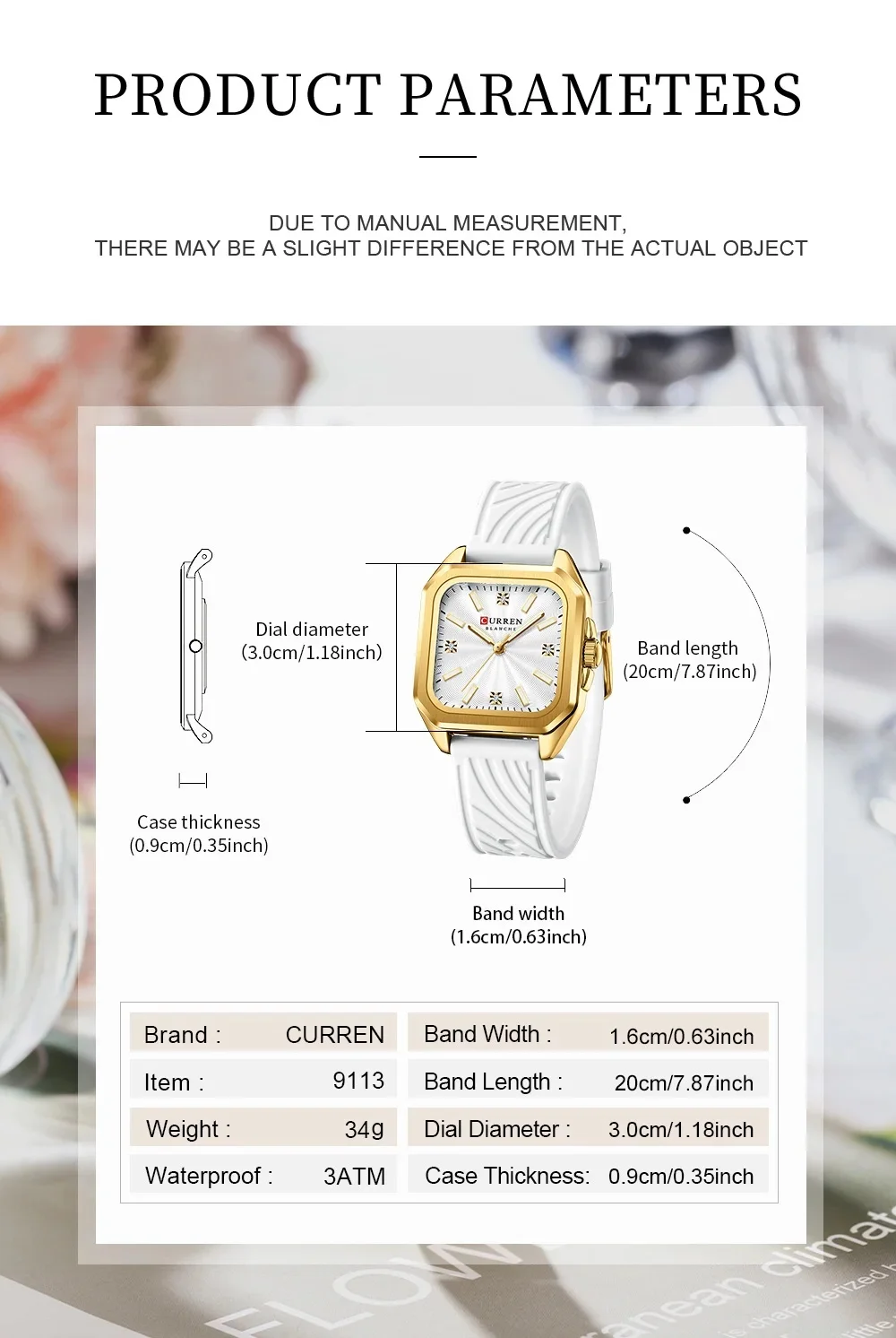 CURREN 9113 Stylish Ladies’ Quartz Watch, Waterproof Square Small Dial Wristwatch with Sleek Design for Daily Wear