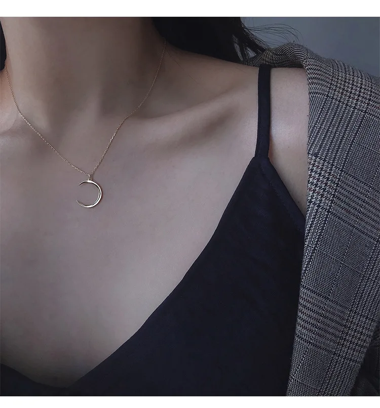 Elegant Simple Moon Necklaces for Women Clavicle Chain Alloy Crescent Pendant Fashion Gothic Jewelry Holiday Gift Wholesale