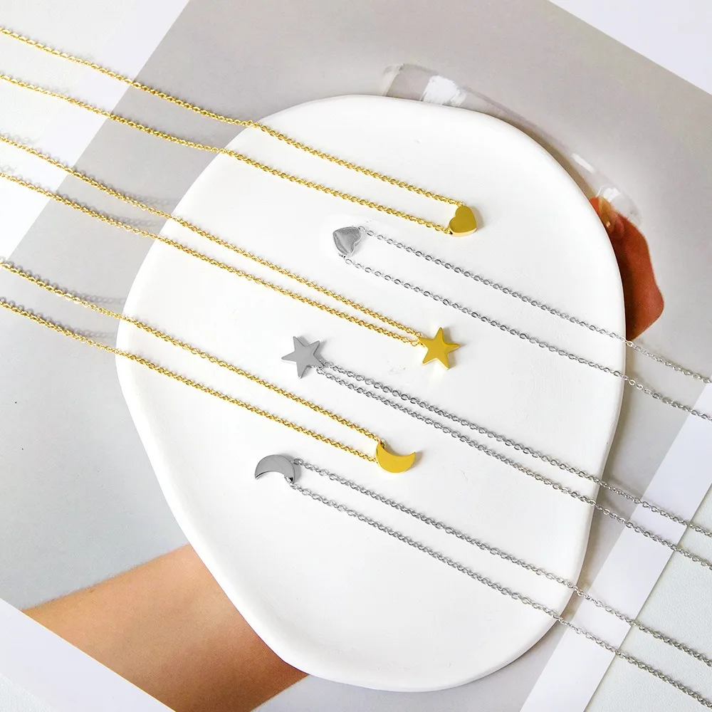 Exquisite Simple Stainless Steel Star Moon Small Flower Heart Shape Pendant Necklace for Women Friend Jewelry Gift Does Not Fade