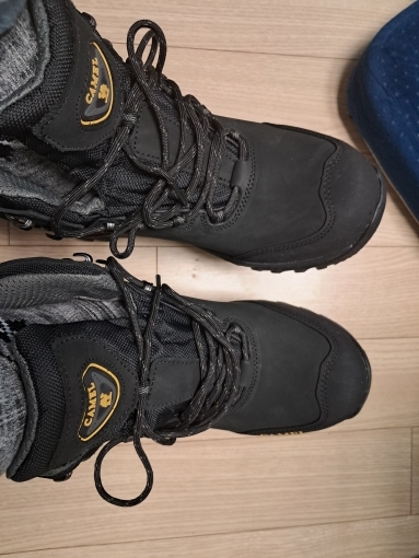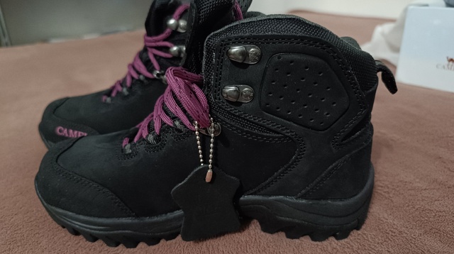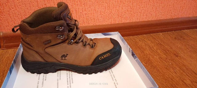 доставлены быстро, в родной коробке, трек отслеживался. сшиты и склеены аккуратно. подошва выглядит солидно, жёсткость поверхности -самое то, что надо. на ноге сидит удобно. при моем родном размере 36, ботинки взяла 37, и правильно сделала. минус один-верх не из натуральной кожи. дополню отзыв после использования в деле.