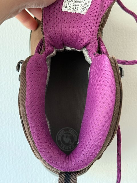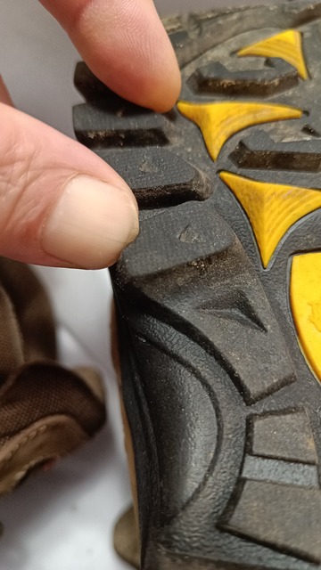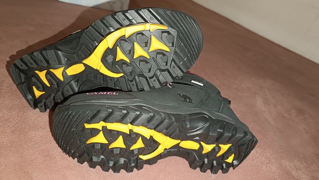В общем ботинки мне понравились, есть конечно нюансы. В больших походах ещё не испытывал, но не много погулял по лесу. Как выше писал – общее впечатление положительное. Что не очень нравится, это как шнуруются ботинки, верхняя пара металлических крючков и средняя проушина с углом 90 градусов и тянуть шнурок через проушину и крючки неудобно. Сравниваю с ботинками KARRIMOR. Подошва цепкая, наверное потому что чёрная мягкая, жёлтая наоборот очень жёсткая и возможно чёрная быстро сотрётся. Опять же по сравнению с KARRIMOR на подошве Vibram.