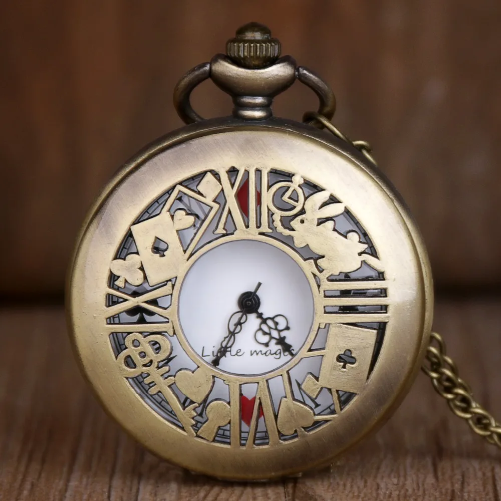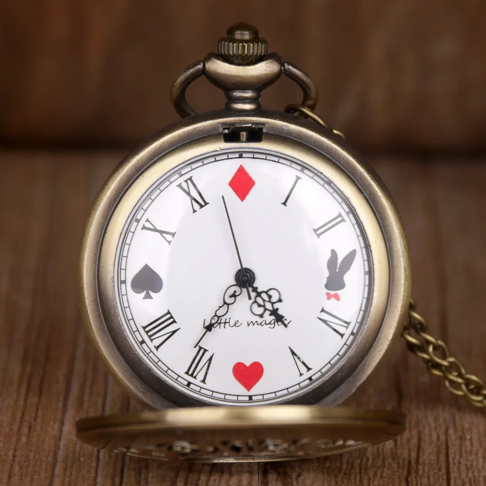 Hot Selling Classic Quartz Pocket Watches Poker Alice Theme Casual Fashion Pocket Fob Watch Best Gifts for Children Boy Girl