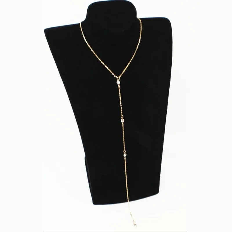 Hot Women Long Back Necklace Body Sexy Chain Bare Back Gold Color Crystal Rhinestone Pendant Necklaces Backdrop Beach Jewelry