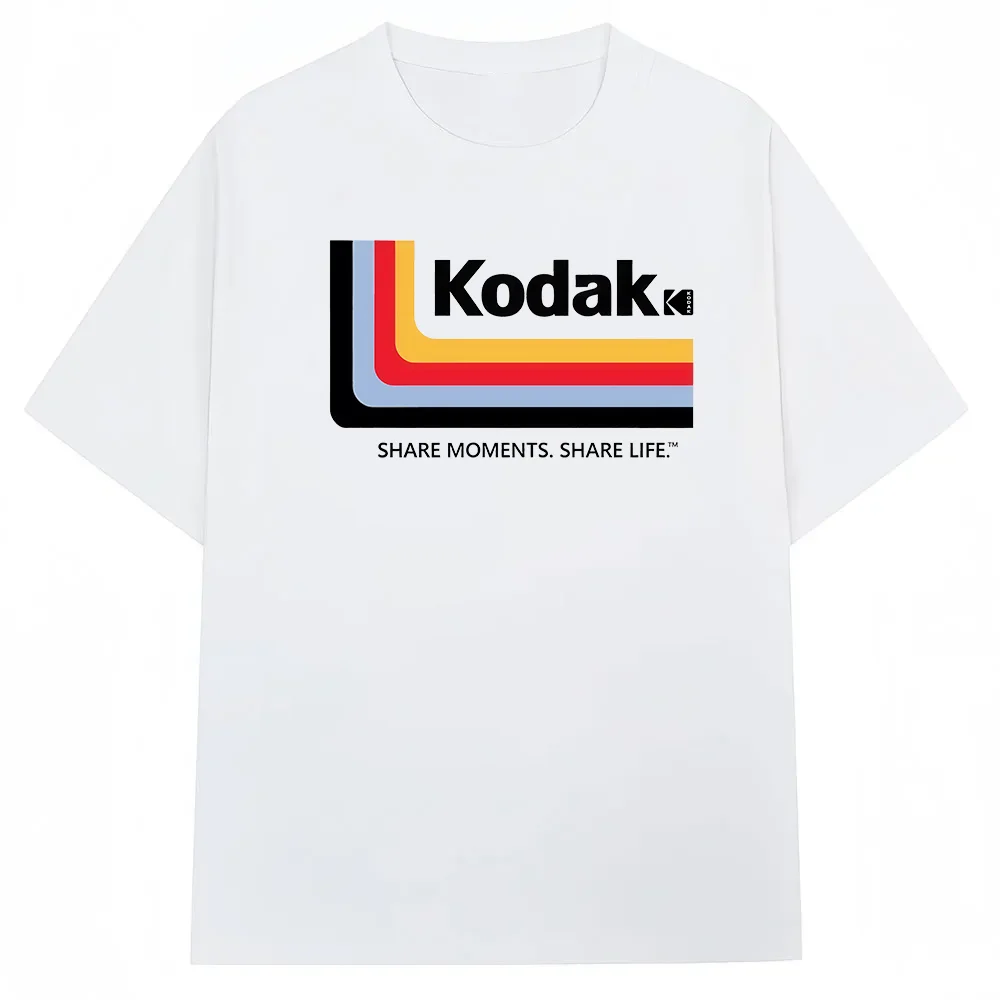 Kodak Summer Brand Fashion Color Print 100% Cotton Versatile Men’s T-shirt Daily Sports Sweat-absorbing Breathable Short Sleeve