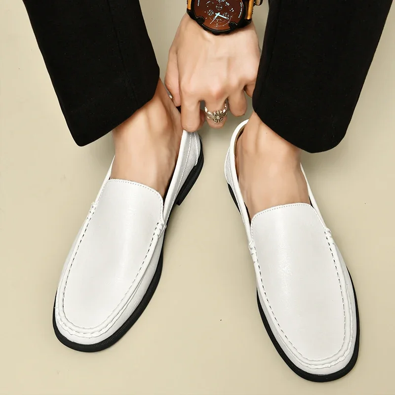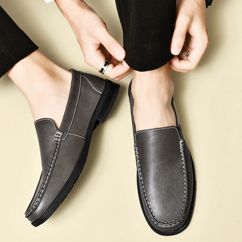 Leather Men Footwear Slip on Office Man Formal Shoes Wedding Party Men Dress Shoes Breath Driving Lazy Loafers Moccasins