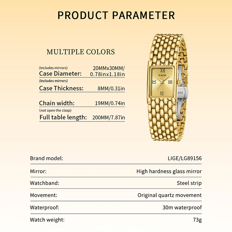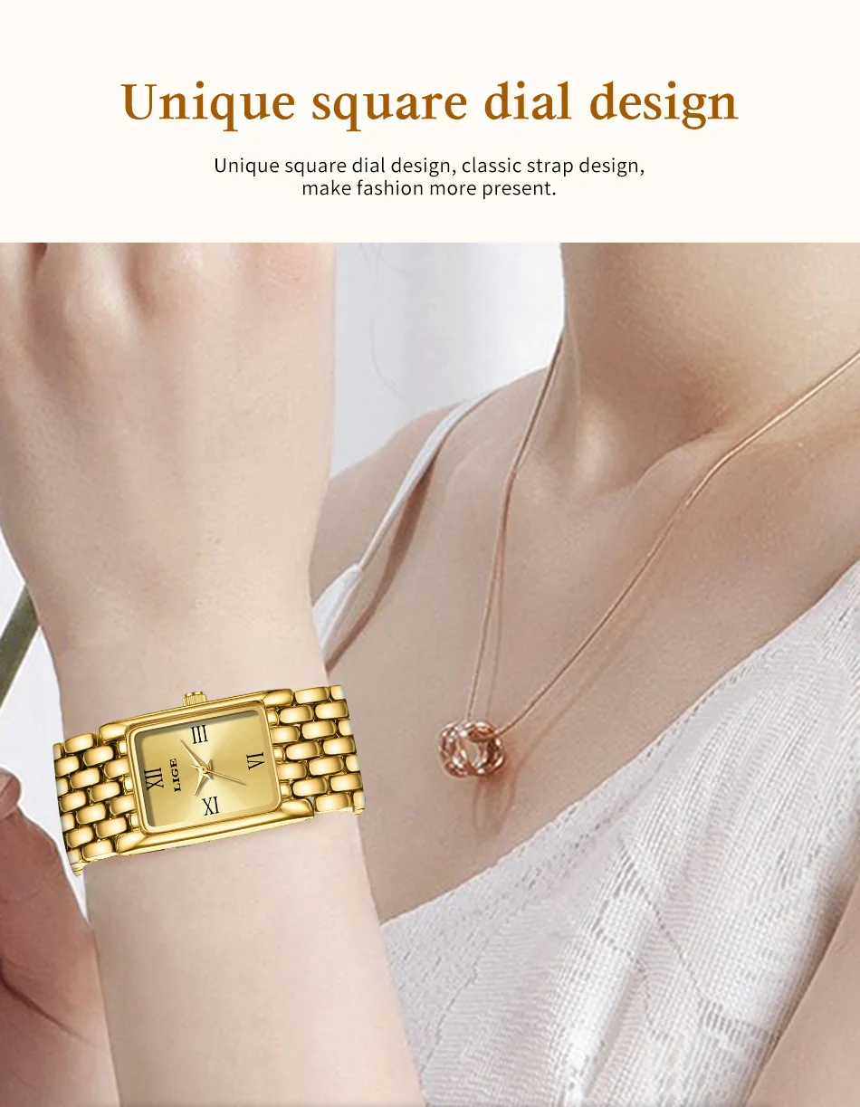 LIGE Luxury Square Ladies Watches Waterpoof Stainless Steel Quartz Wristwatches Fashion Classic Business Gift Watches For Woman