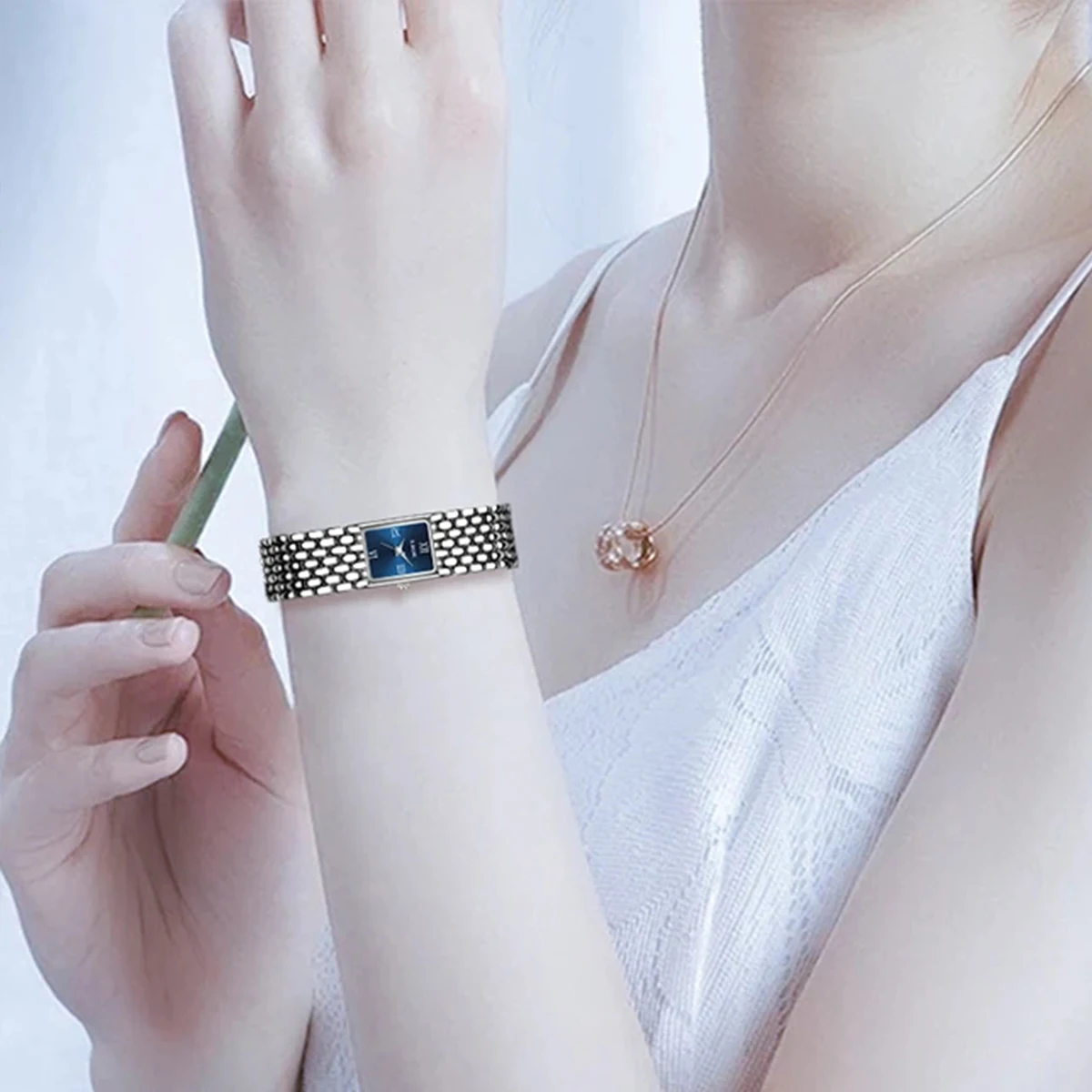 LIGE New Design Ladies Watch Fashion Quartz Wristwatch Silver Simple Square Women Watches Luxury Stainless Steel Folding Clock