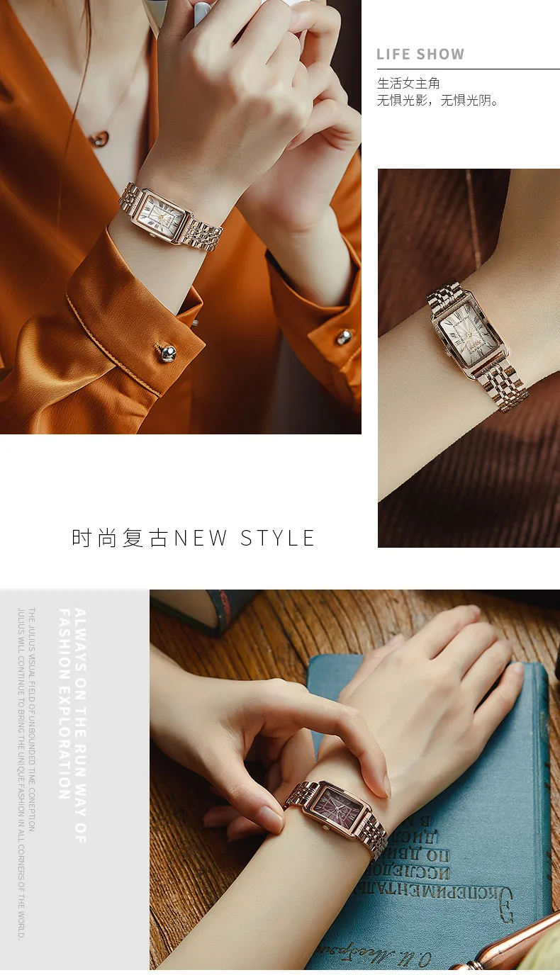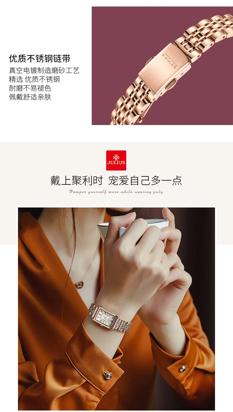 Luxury Classic Women’s Watch Japan Mov’t Lady Hours Fine Fashion Stainless Steel Bracelet Clock Girl’s Cute Gift Julius Box