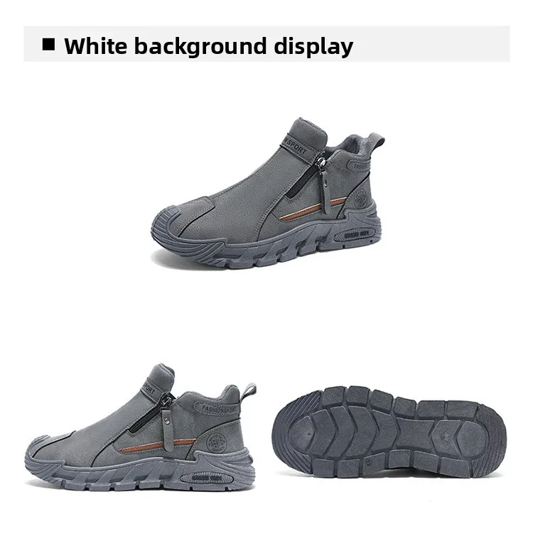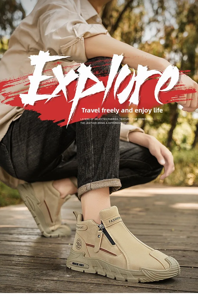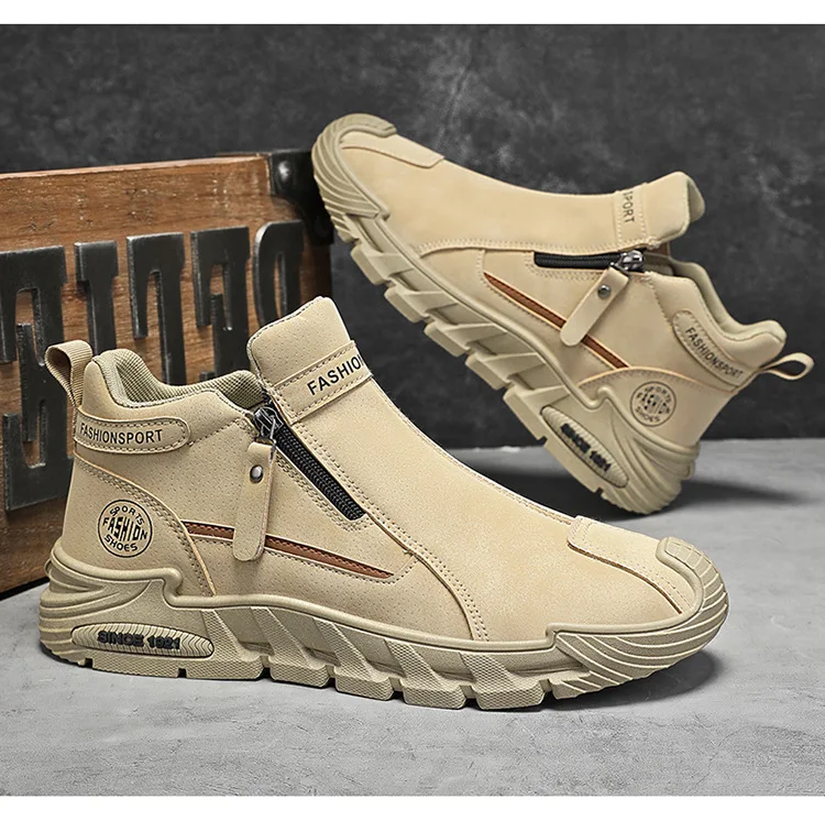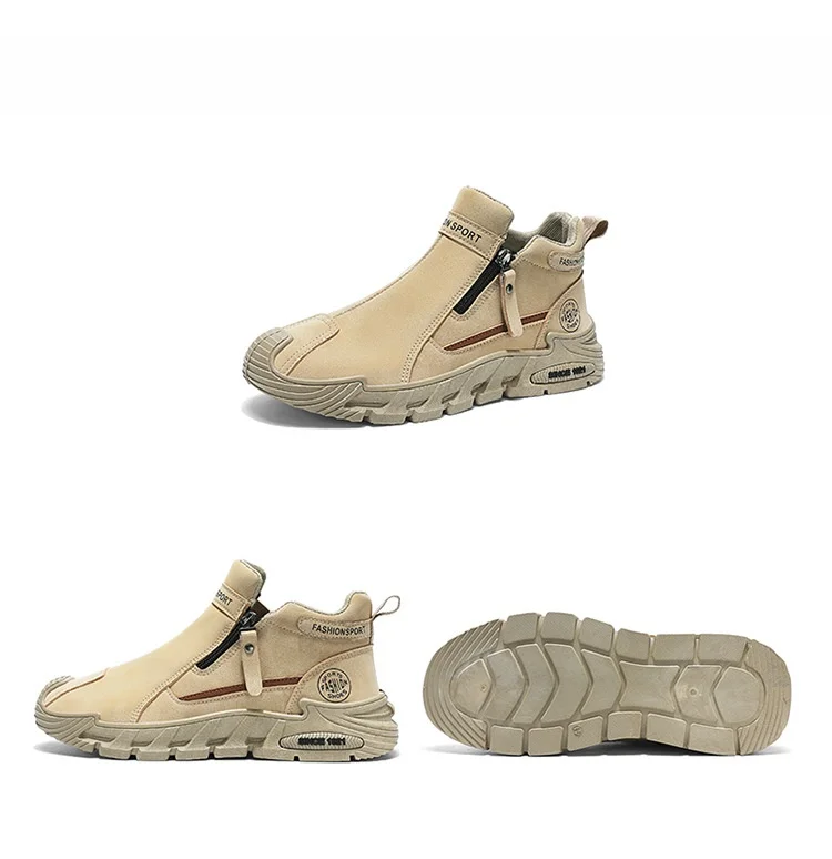 Men’s Casual Sport Boots Slip-Resistant Work Shoes High-Top Short Boots Spring Autumn Style round Toe Thick Bottom