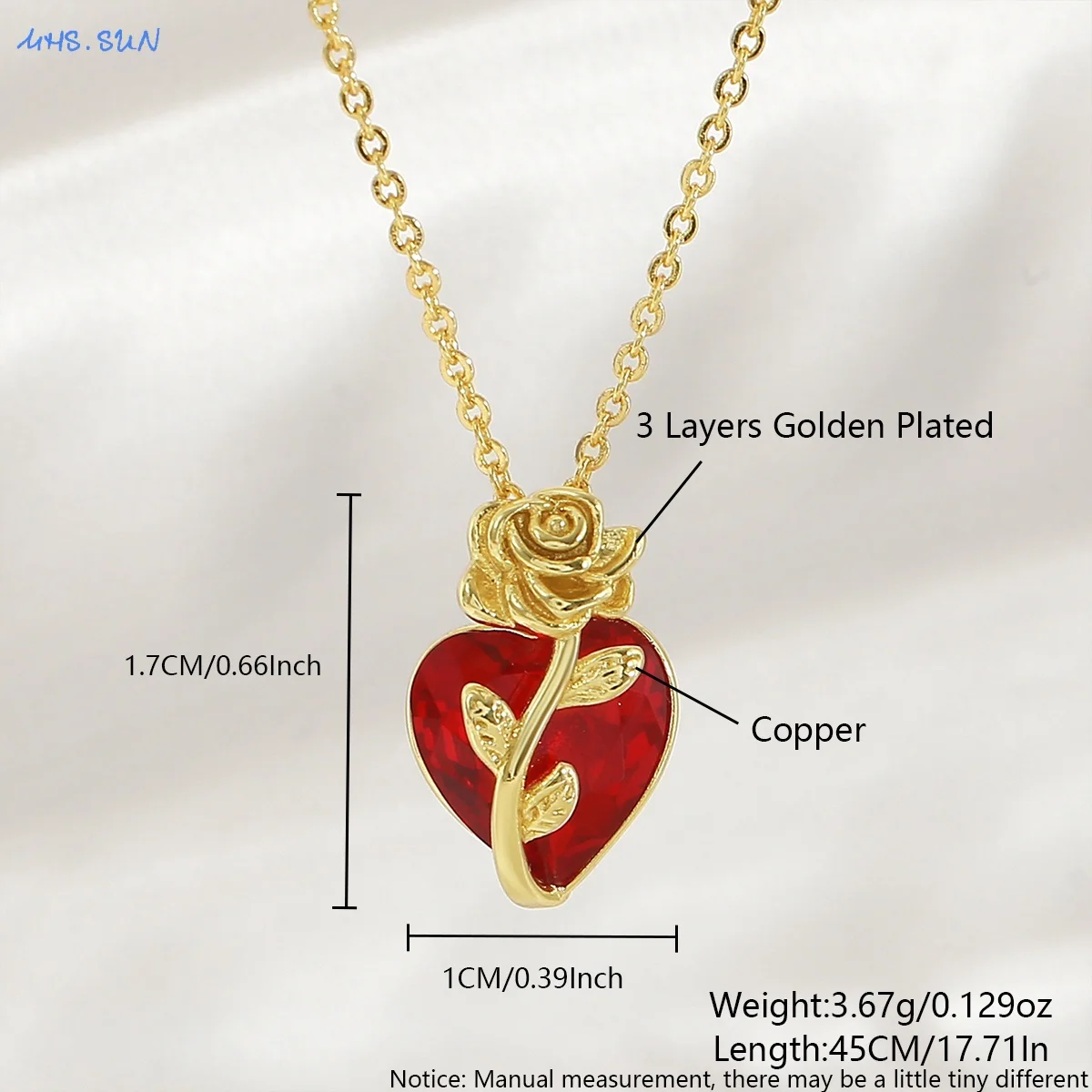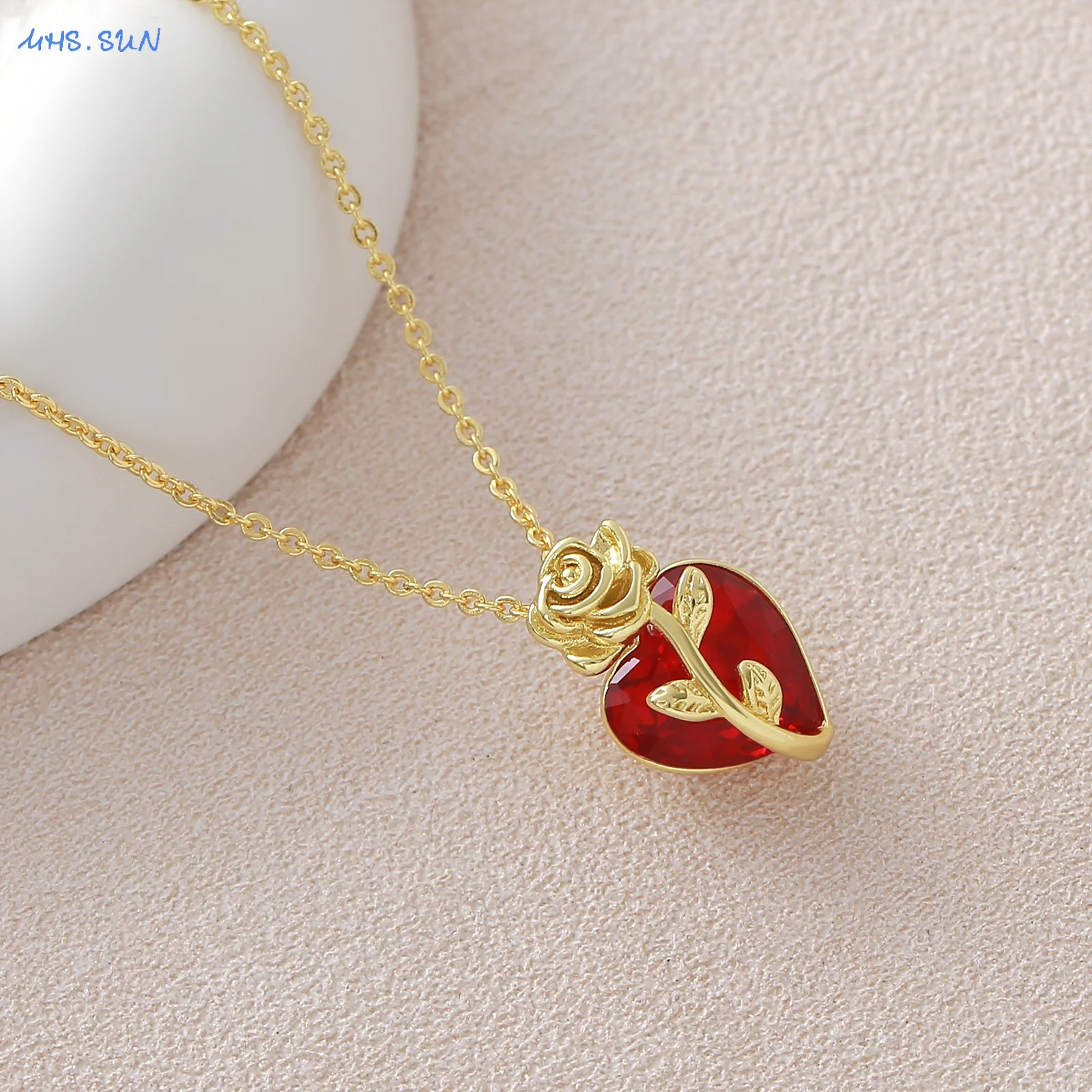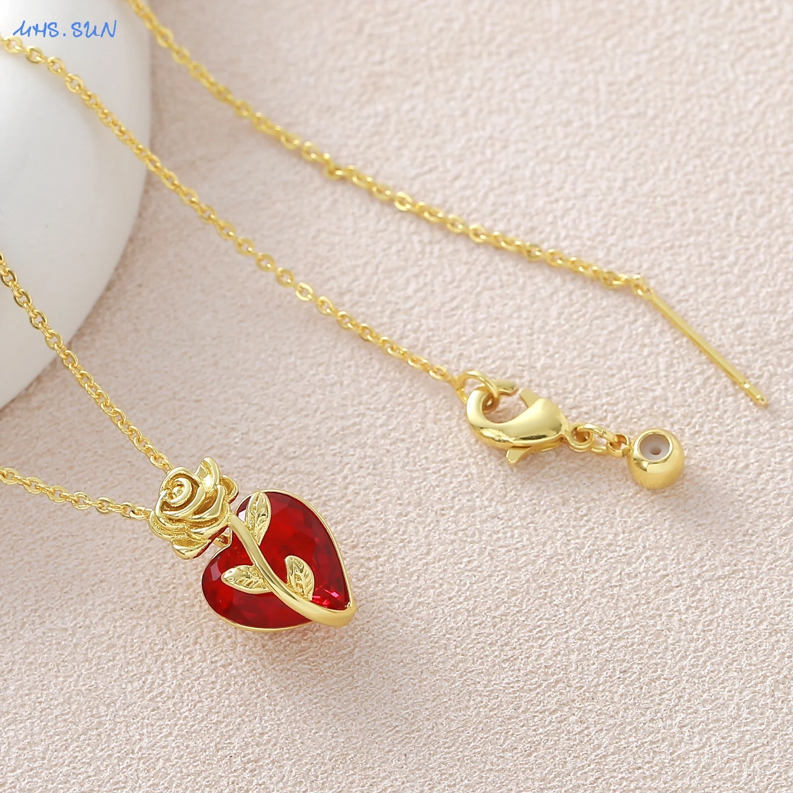 MHS.SUN Romantic Red Sacred Heart Flower Pendant Necklaces Gold Plated Chain Banquet Party Jewelry Gifts For Women Girls