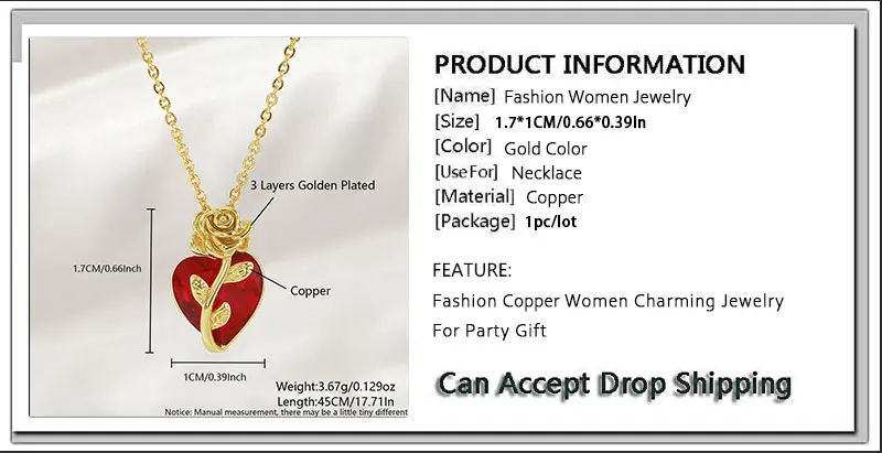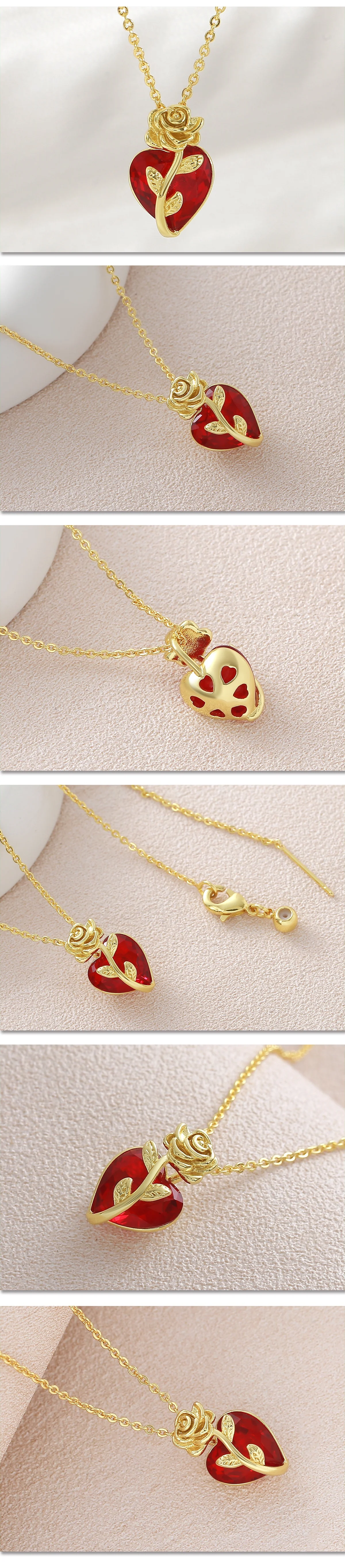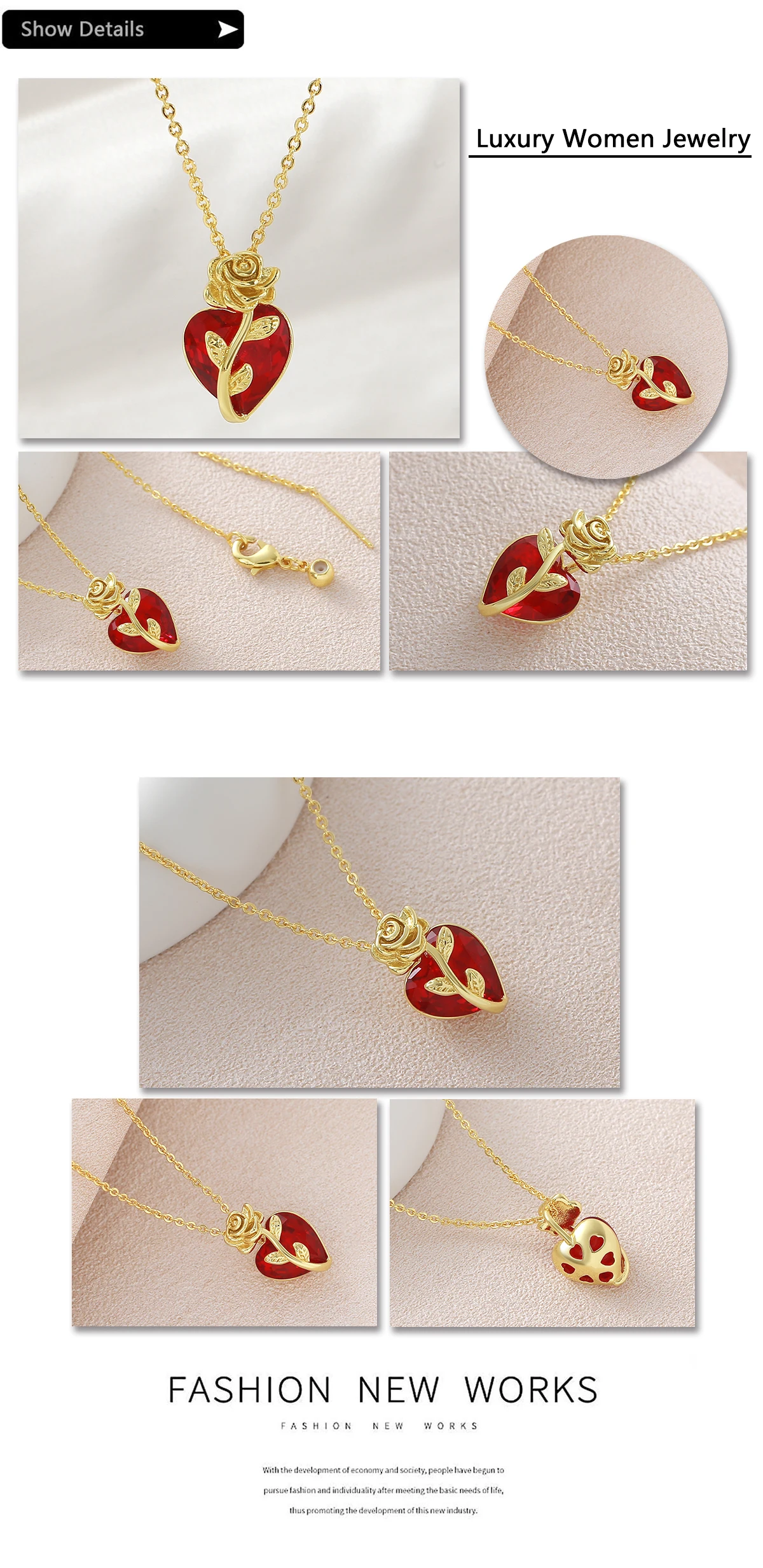 MHS.SUN Romantic Red Sacred Heart Flower Pendant Necklaces Gold Plated Chain Banquet Party Jewelry Gifts For Women Girls