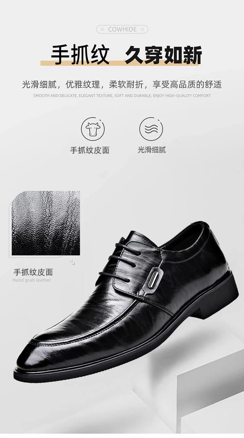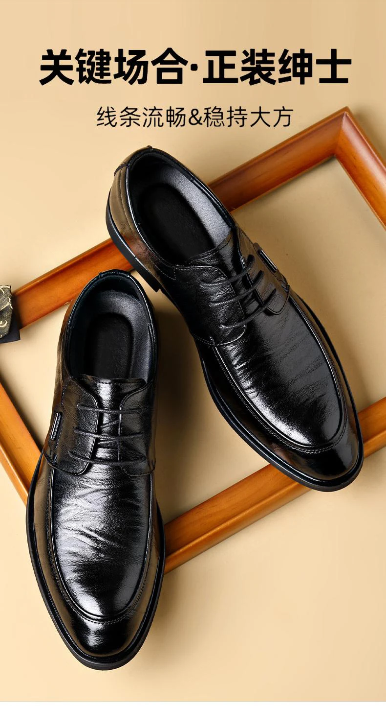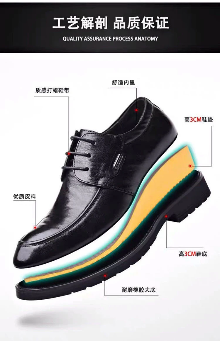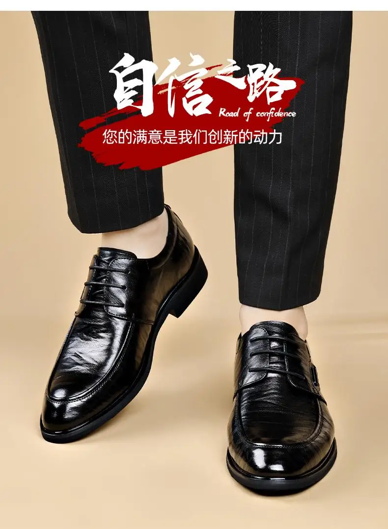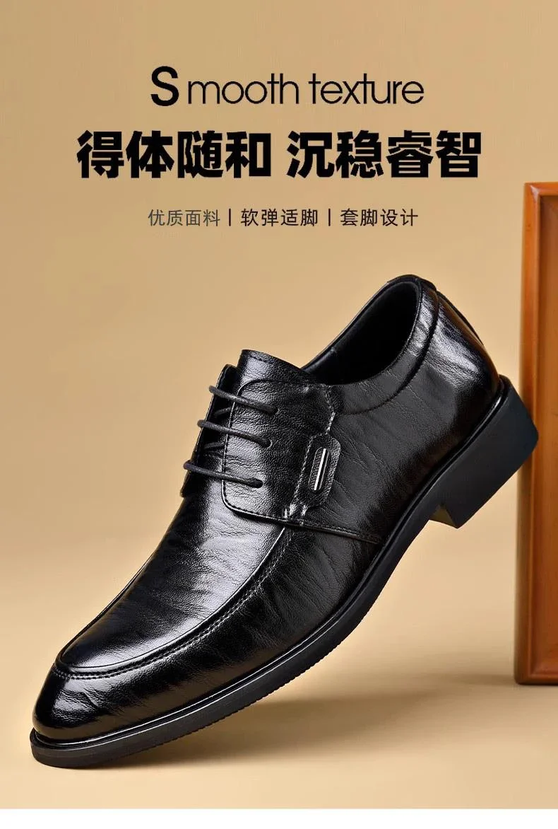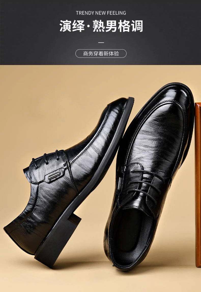 New Men’s Casual Professional Invisible Insole Height-increasing Leather Shoes, Large Size 35-50 Fashionable Leather Shoes