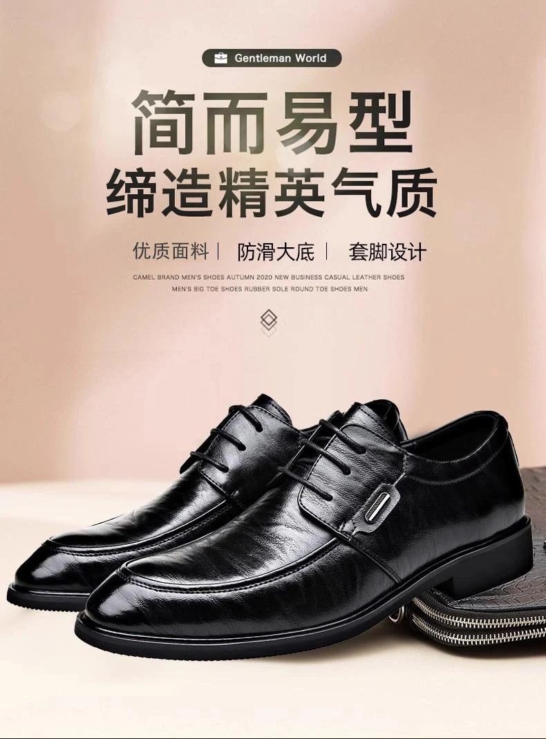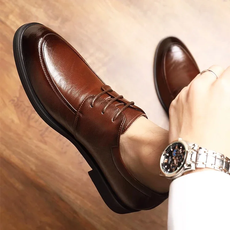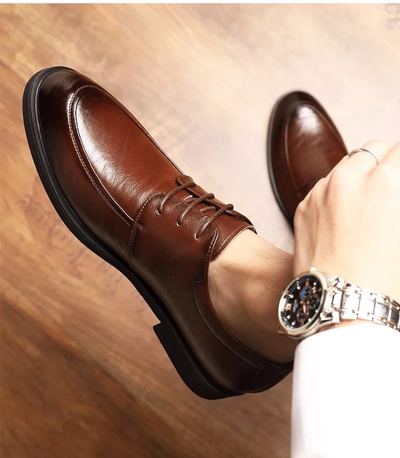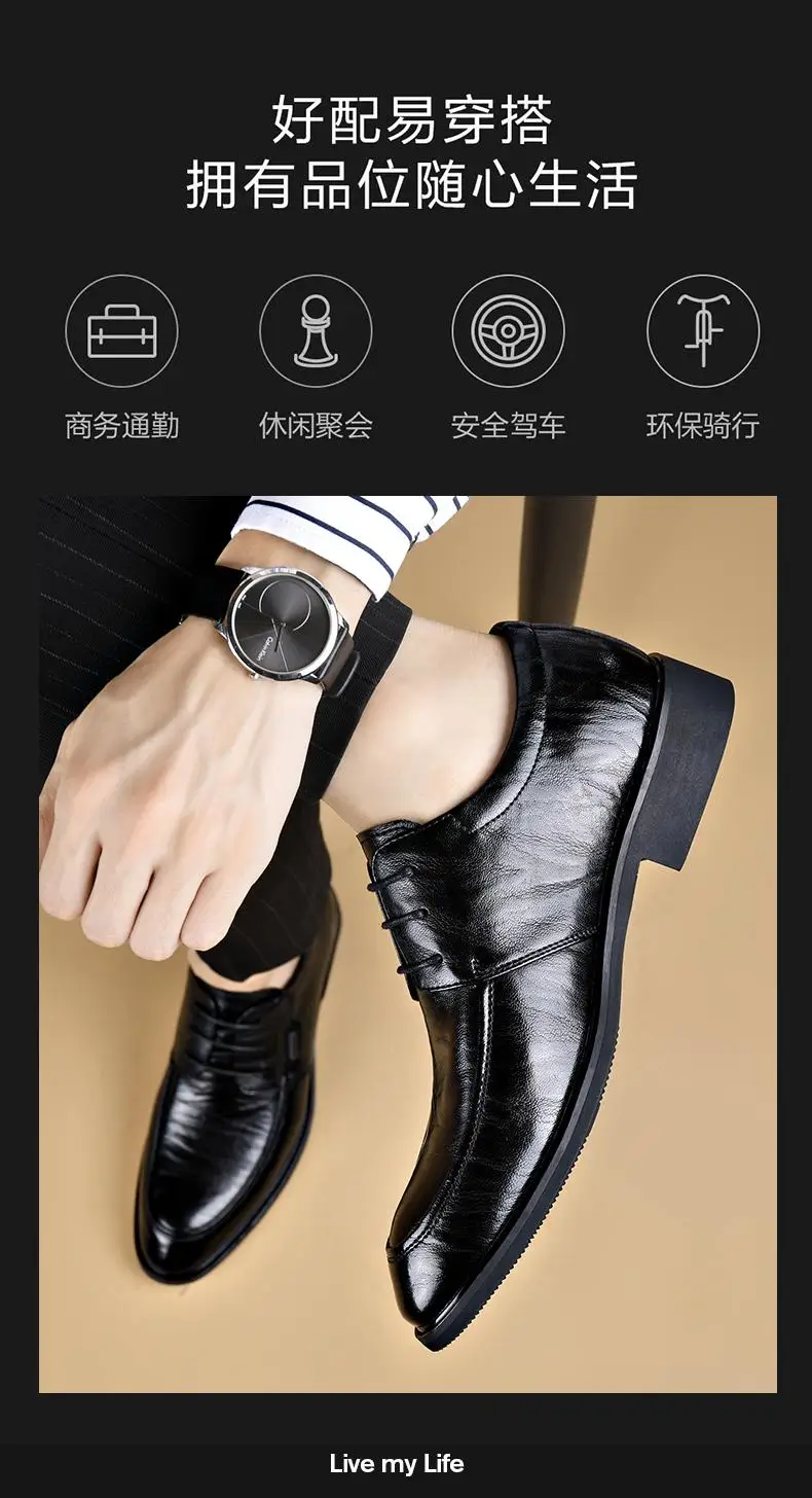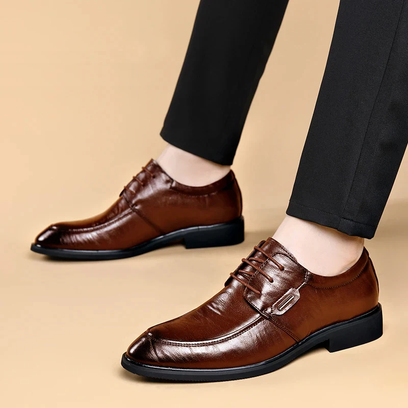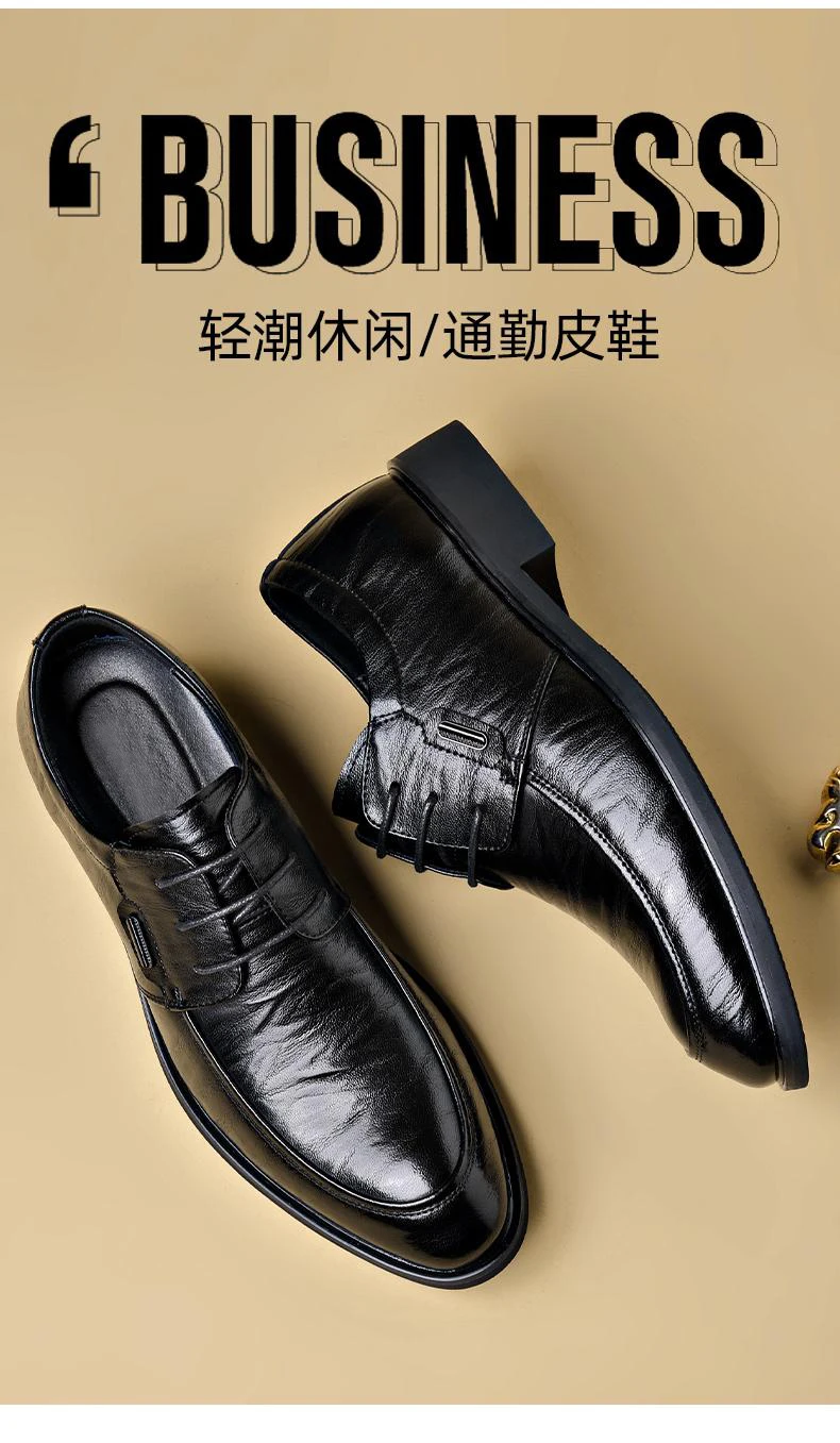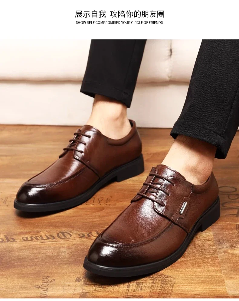 New Men’s Casual Professional Invisible Insole Height-increasing Leather Shoes, Large Size 35-50 Fashionable Leather Shoes