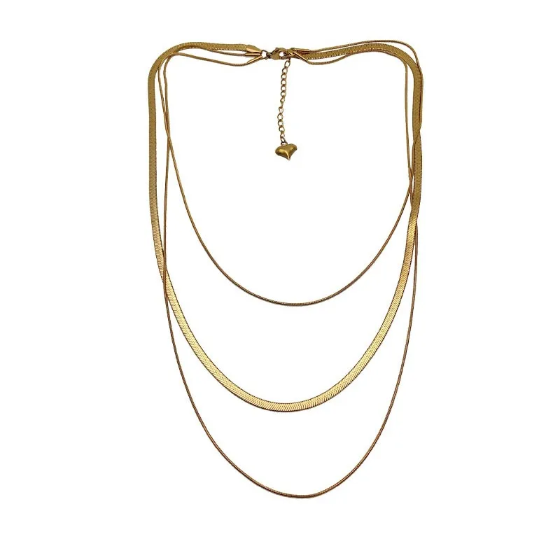 OIMG 316L Stainless Steel Gold Plated IG Trendy Minimalist Three layers Snake Chain Neckalce For Women Party Jewelry Rust-Proof