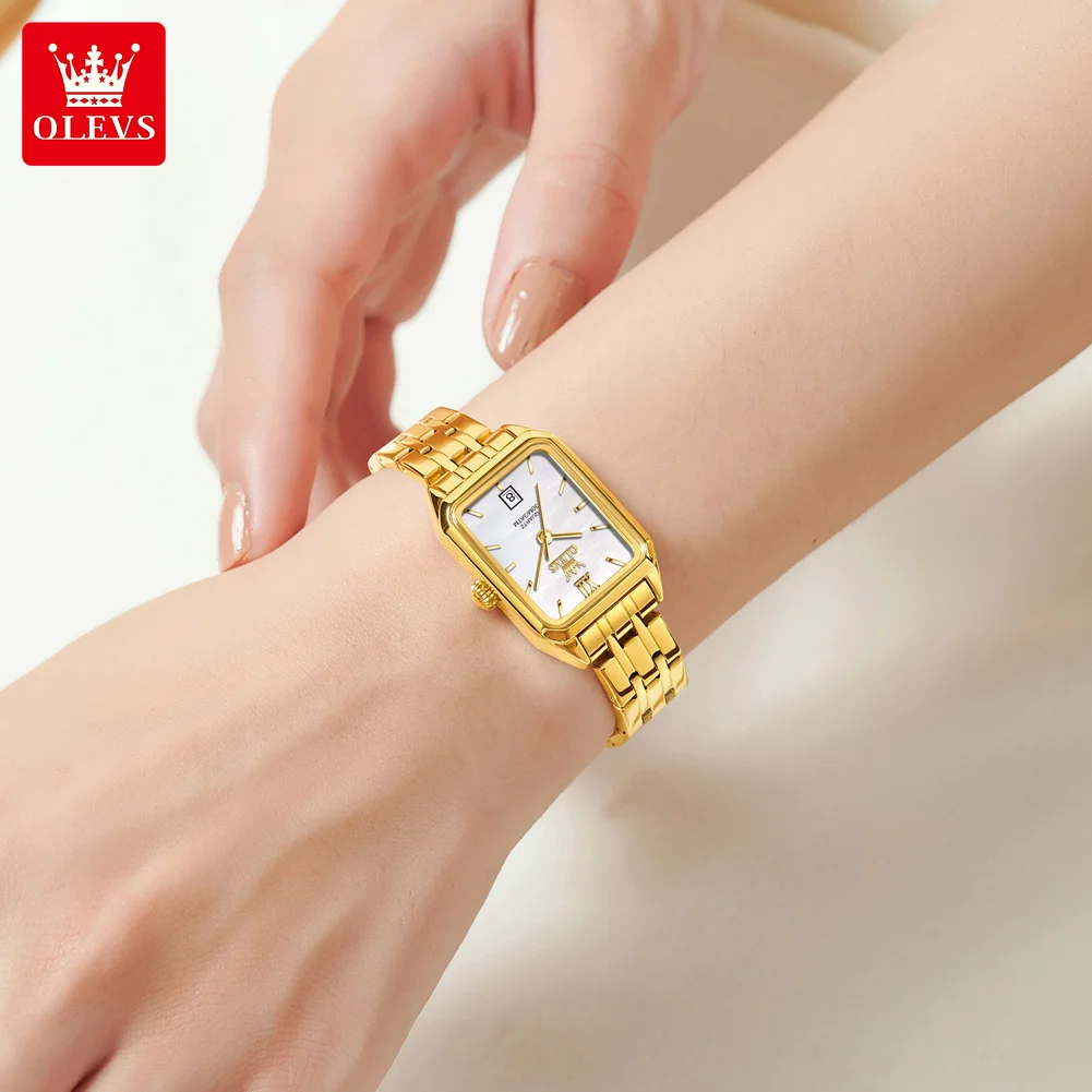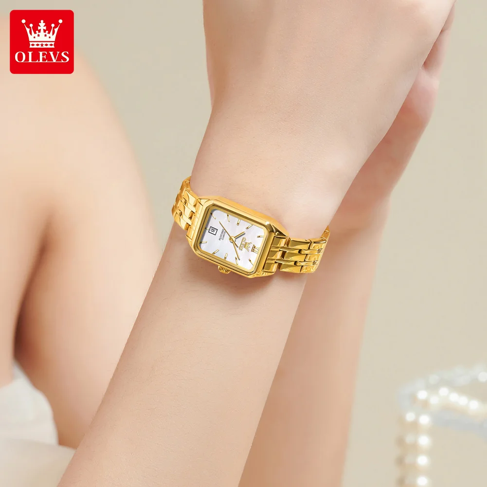 OLEVS 5616 New Quartz Watch for Women Fashion Elegant Square Golden Watch Calendar Waterproof Stainless Steel Ladies Wristwatch