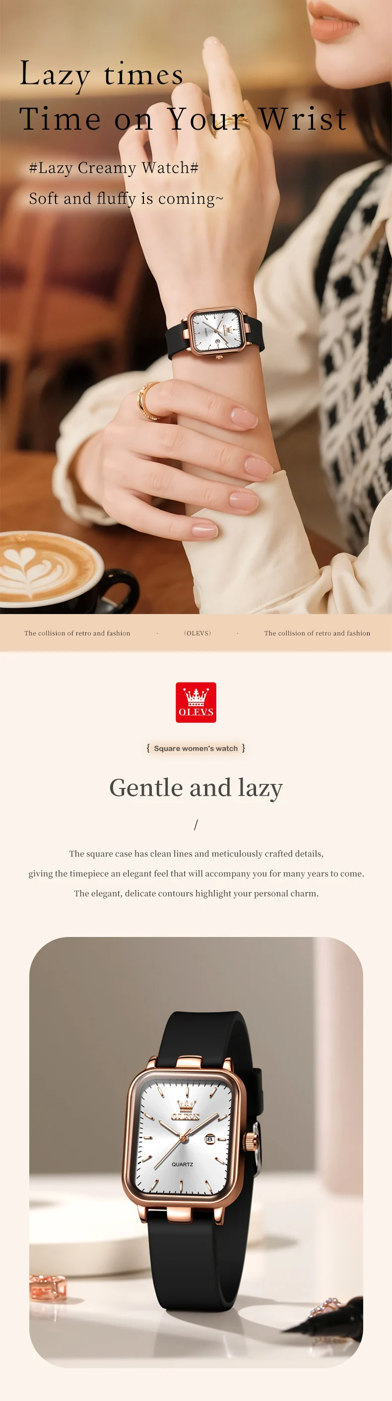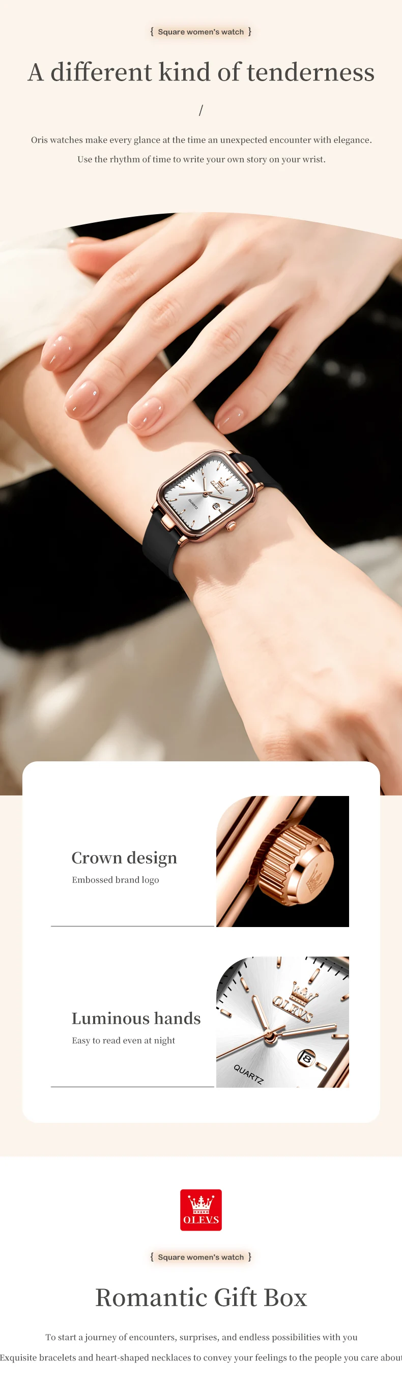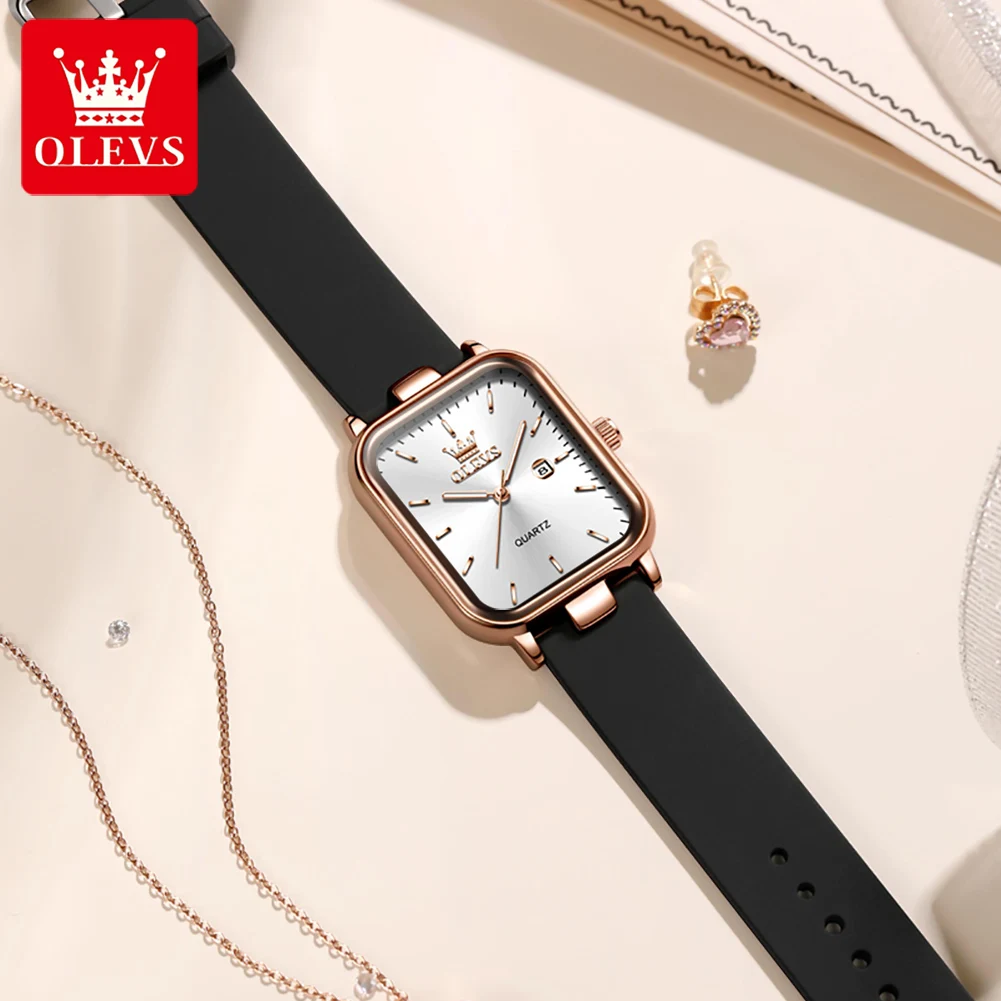 OLEVS 7089 Women’s Watches With Gift Box Original Silicone Strap Fashion Square Waterproof Luminous Women’s Quartz Wristwatches