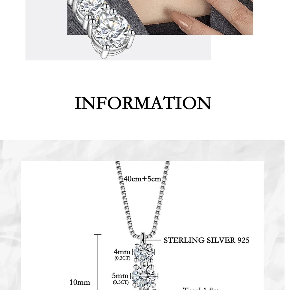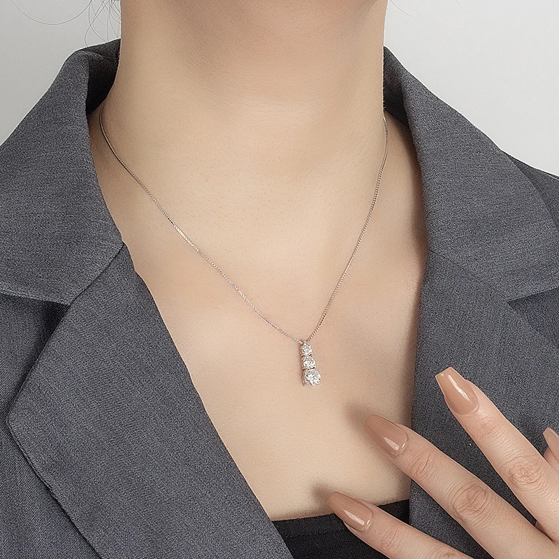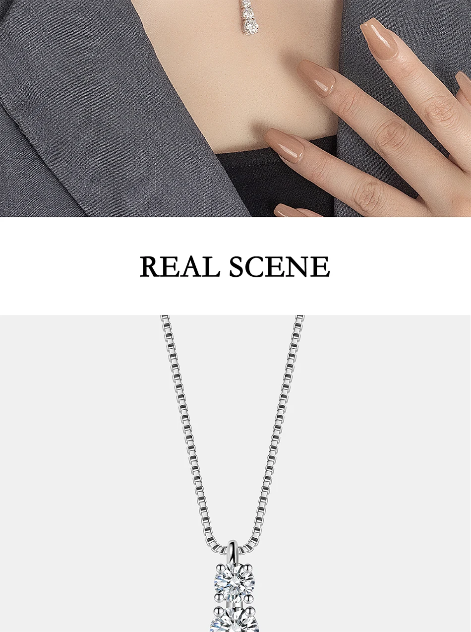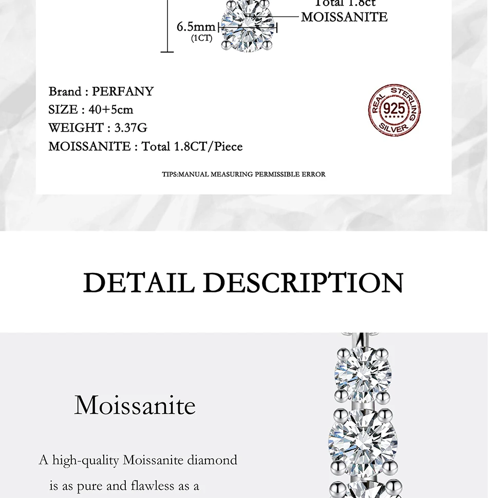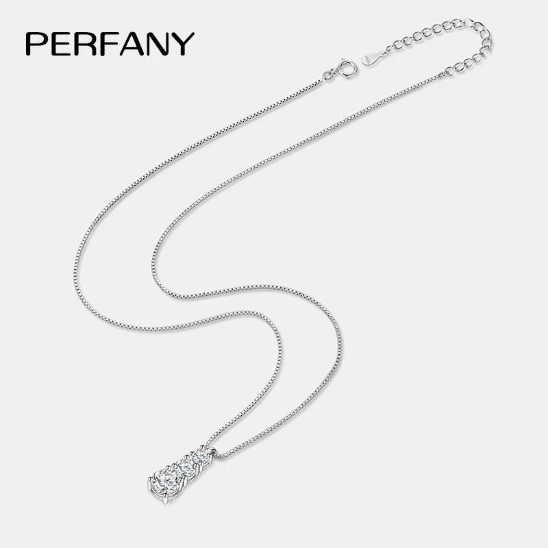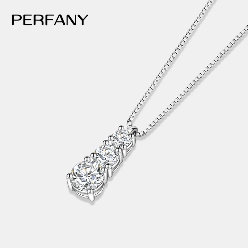 PERFANY 1.8CT Moissanite Necklace for Women S925 Pure Silver 3-Stone Laboratory Cultivated Diamond Pendant Luxury Jewelry Gift