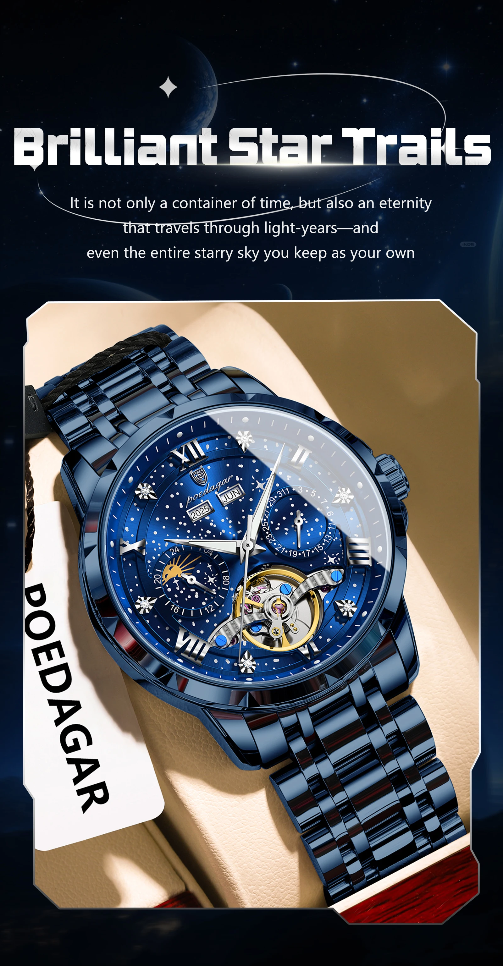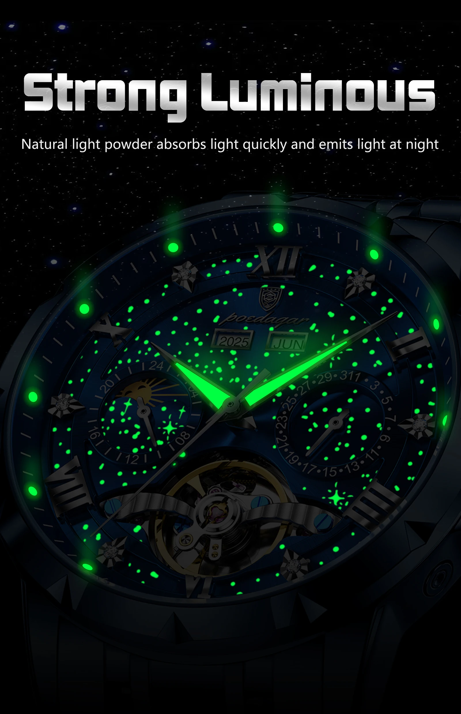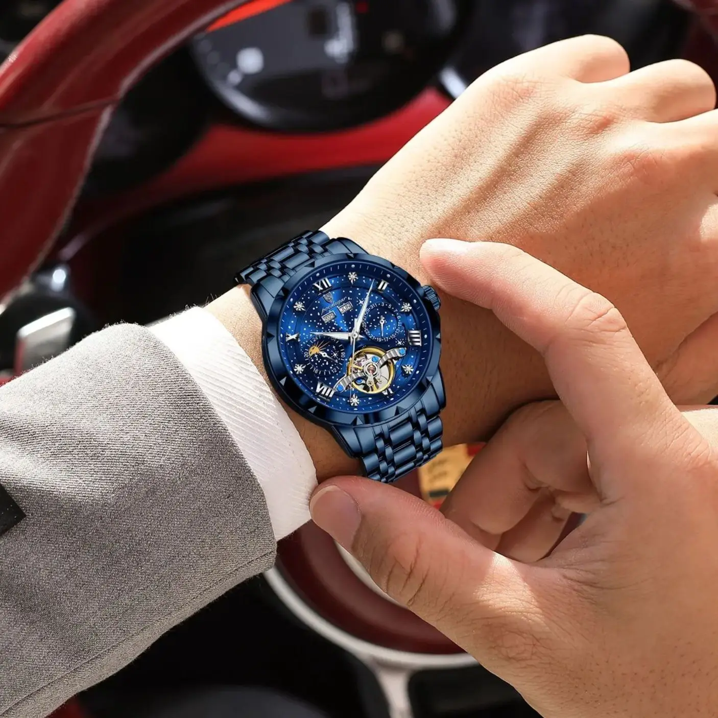 POEDAGAR Luxury Men Wristwatch Fashion Date Hollow Tourbillon Man Clock Automatic Mechanical Stainless Steel Men’s Watches Reloj