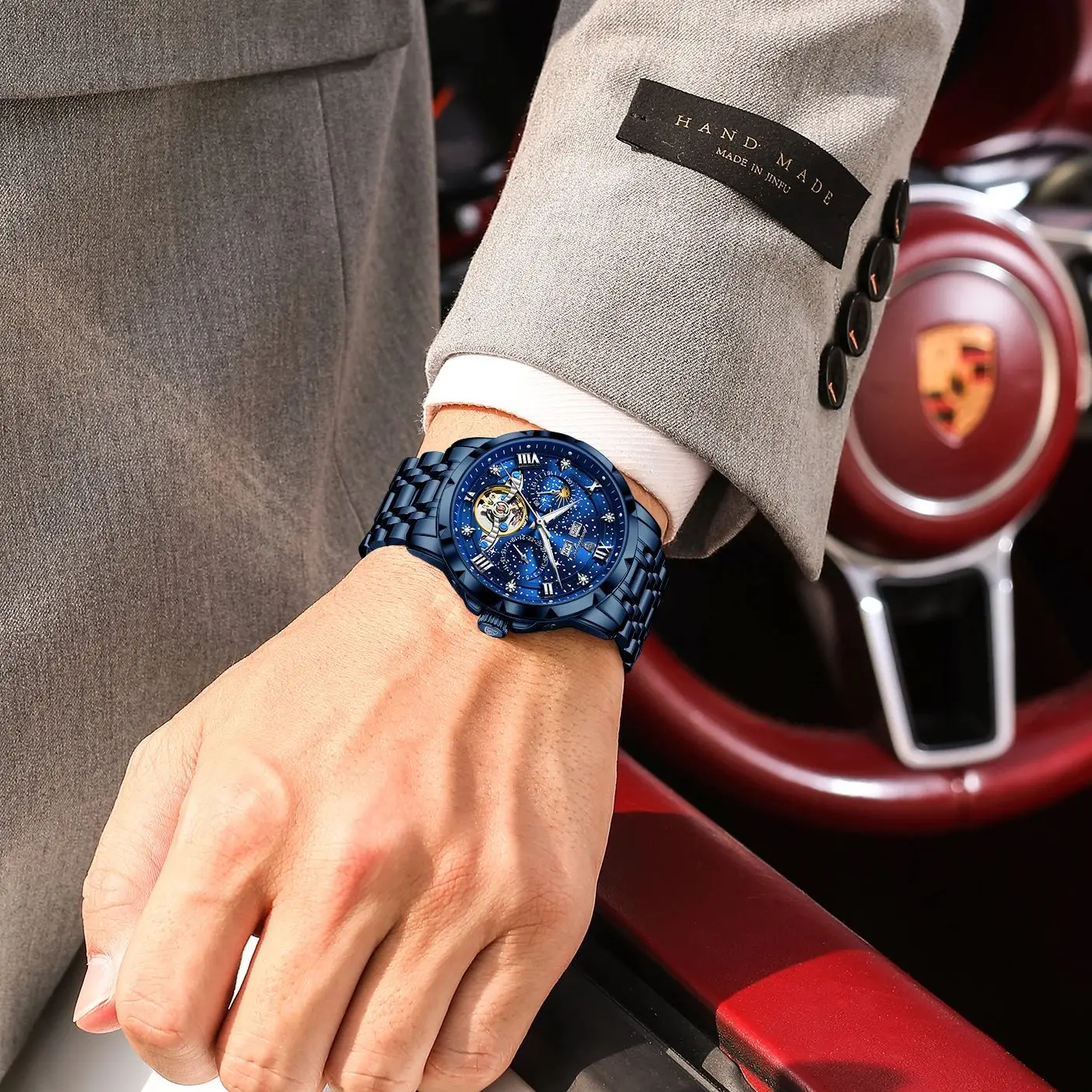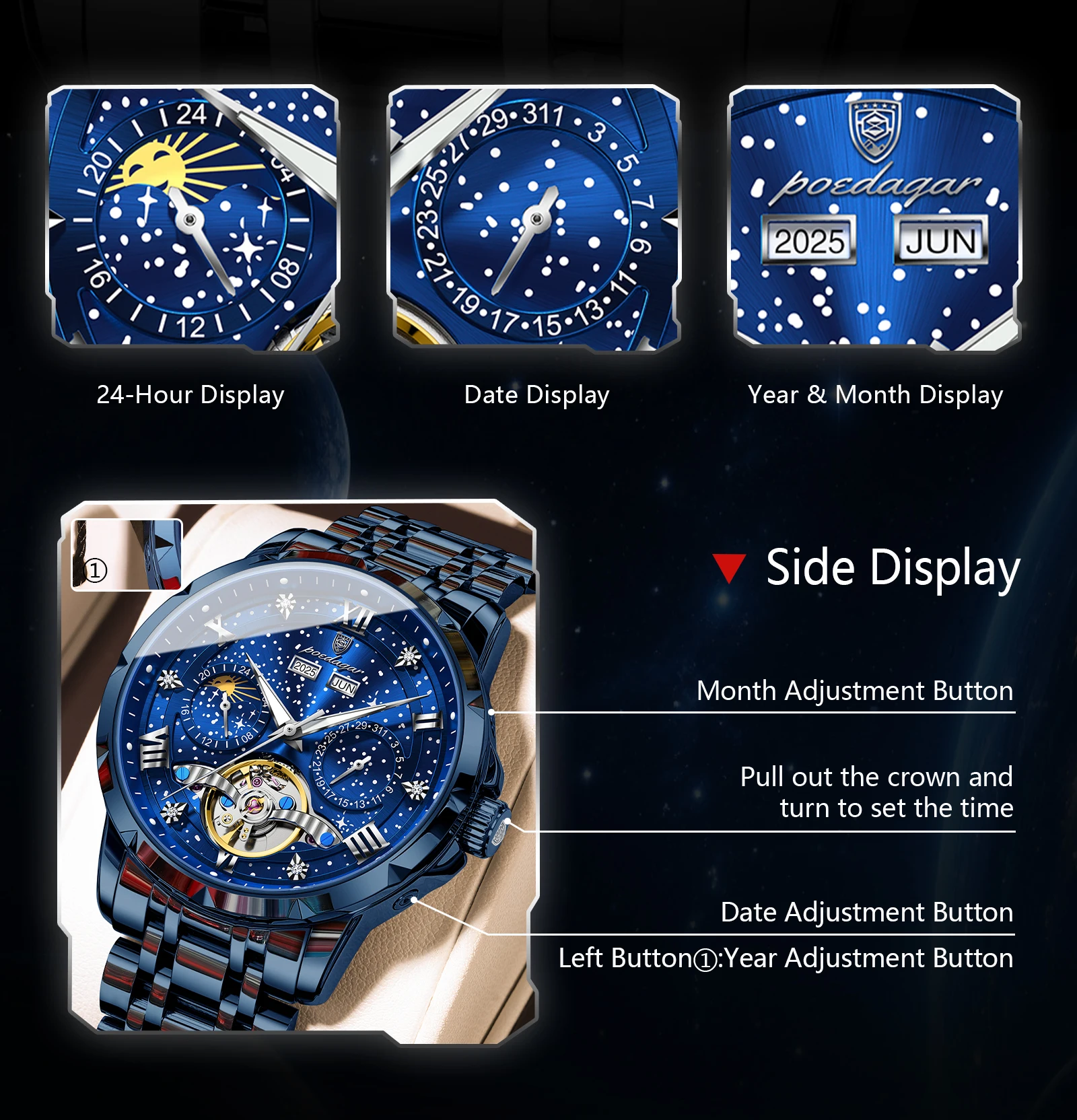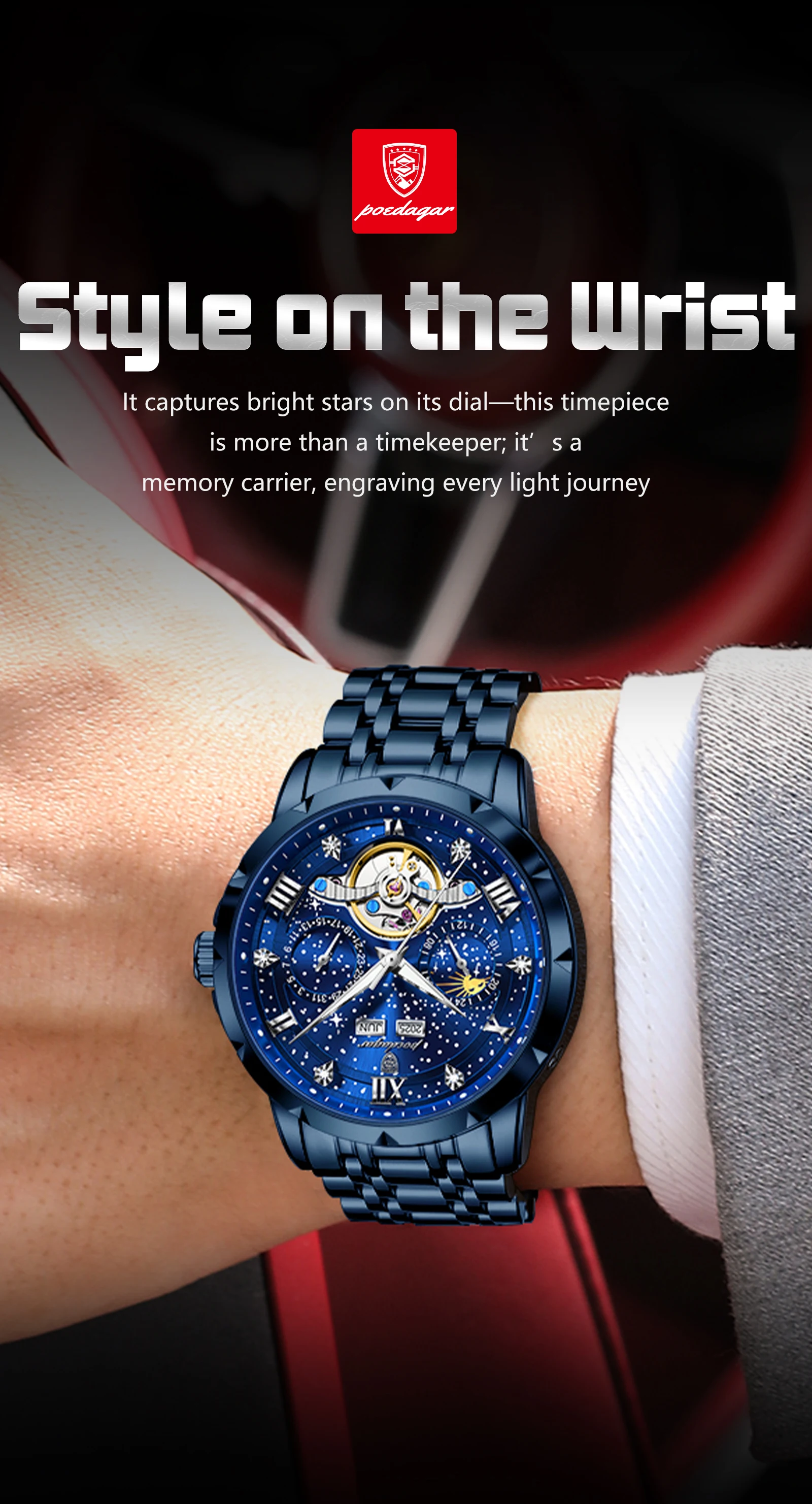 POEDAGAR Luxury Men Wristwatch Fashion Date Hollow Tourbillon Man Clock Automatic Mechanical Stainless Steel Men’s Watches Reloj