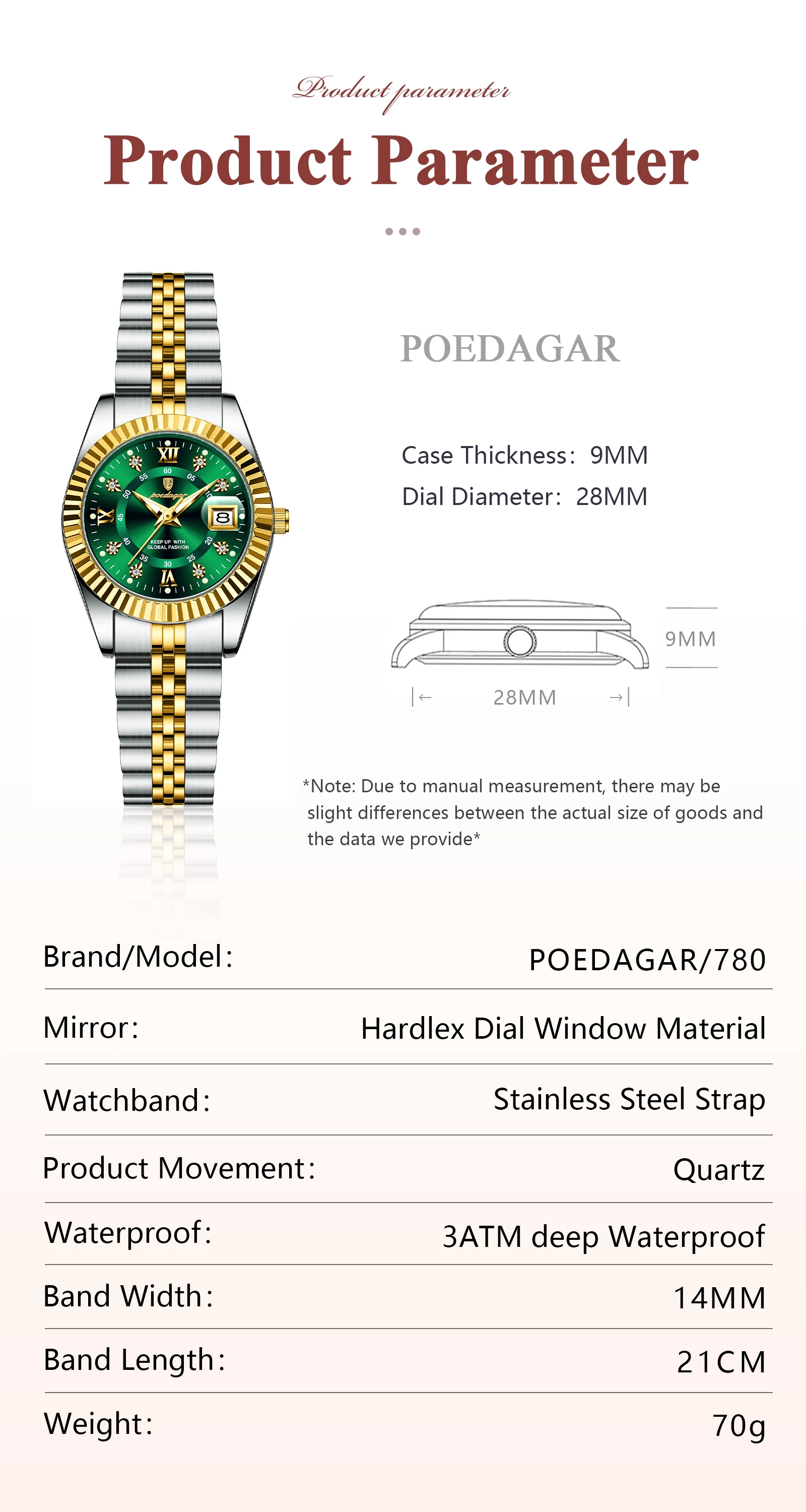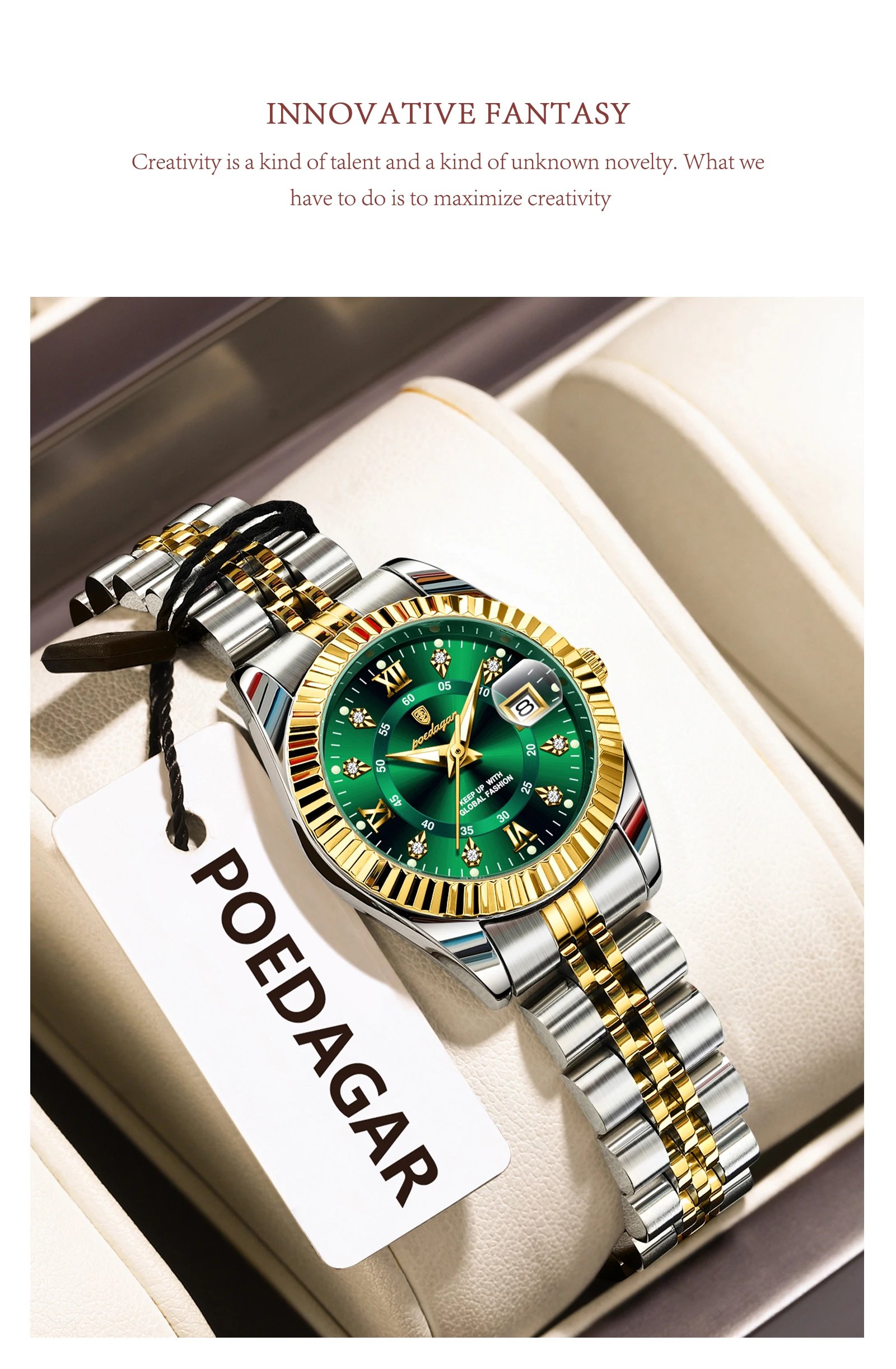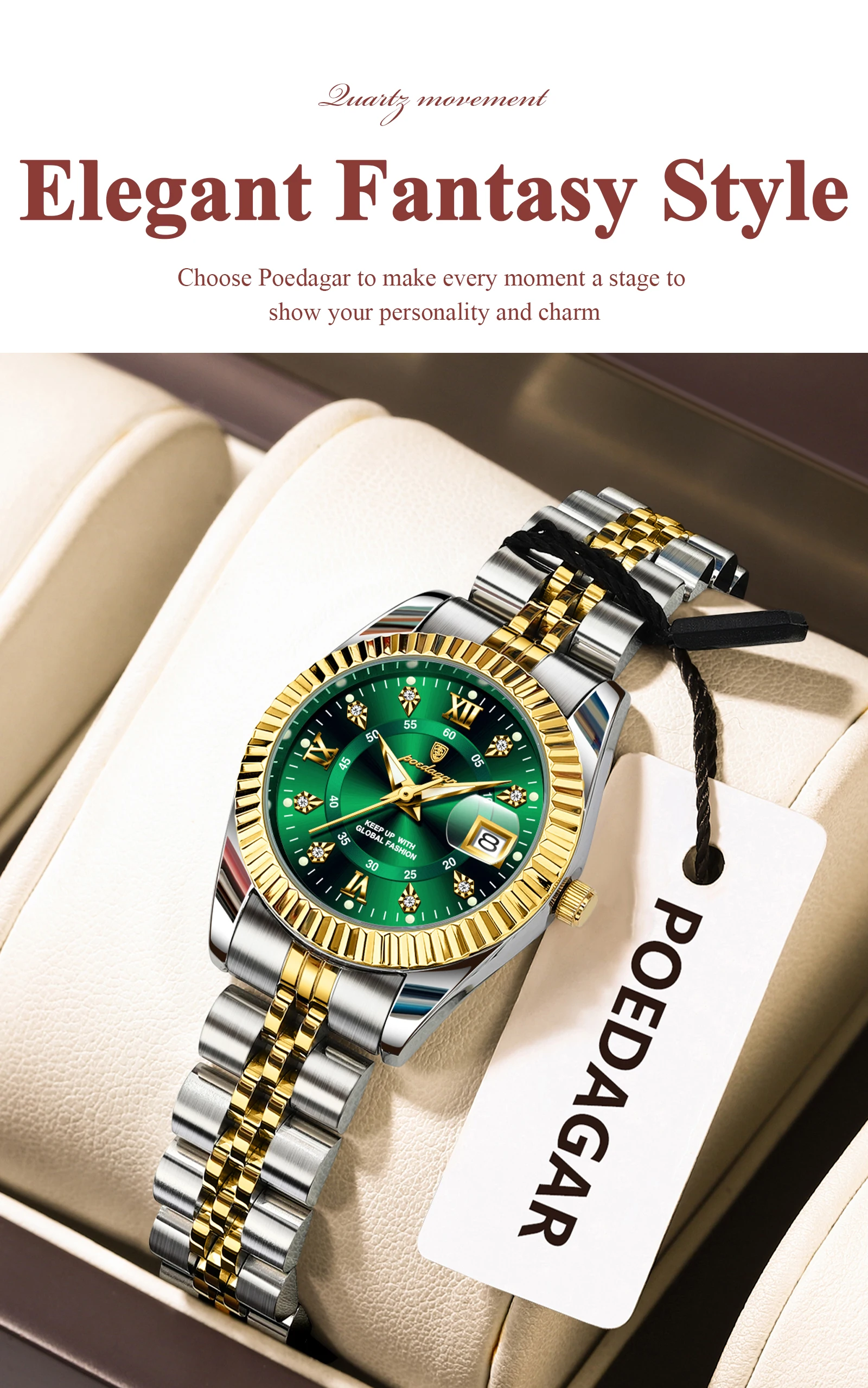 POEDAGAR Top Luxury Ladies Wristwatch Waterproof Luminous Date Casual Women Watch Stainless Steel Quartz Fashion Women’s Watches
