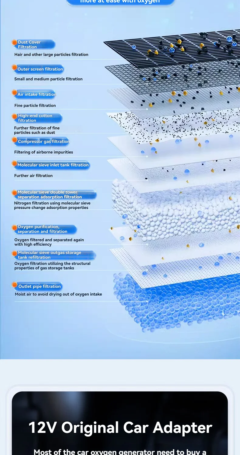Our home oxygen concentrator uses high-quality CECA molecular sieves. After a strict self-filtration process, the oxygen is purified and finally delivered to the user, ensuring that every breath you take is pure and clean. The machine comes with 1 filter cotton. The filter cotton can be cleaned and used repeatedly. It saves the cost and maintenance cost of frequent replacement of filter cotton. If you need to purchase additional filter cotton, you can contact our store customer service.