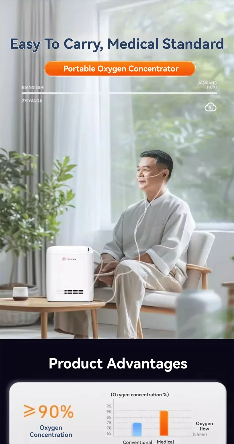 Portable Oxygen Concentrator 1L-5L Adjustable Flow Rechargeable Oxygen Concentrator COPD Elderly Man Breathing Oxygen Outdoors