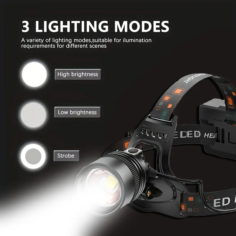 Powerful LED Headlamp Aluminium Alloy Headlight Led Head High Lumen Rechargeable Led Headlamp Camping Searching Hunting Fishing