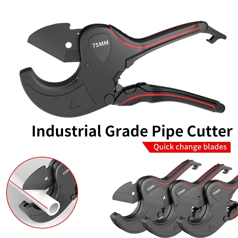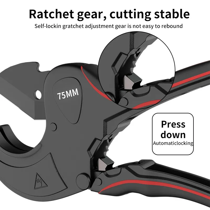 Ratchet Pipe Cutter 32-75mm, Aluminum Alloy Scissor Tool for Cutting PVC PU PP PE Plastic Hose Tube, Hand Tool