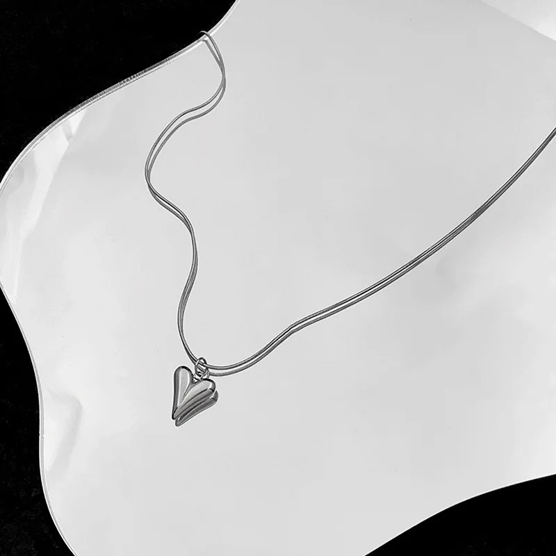 Silver Color Double Layered Love Heart Pendant Necklace for Women Simple Neck Chain Jewelry