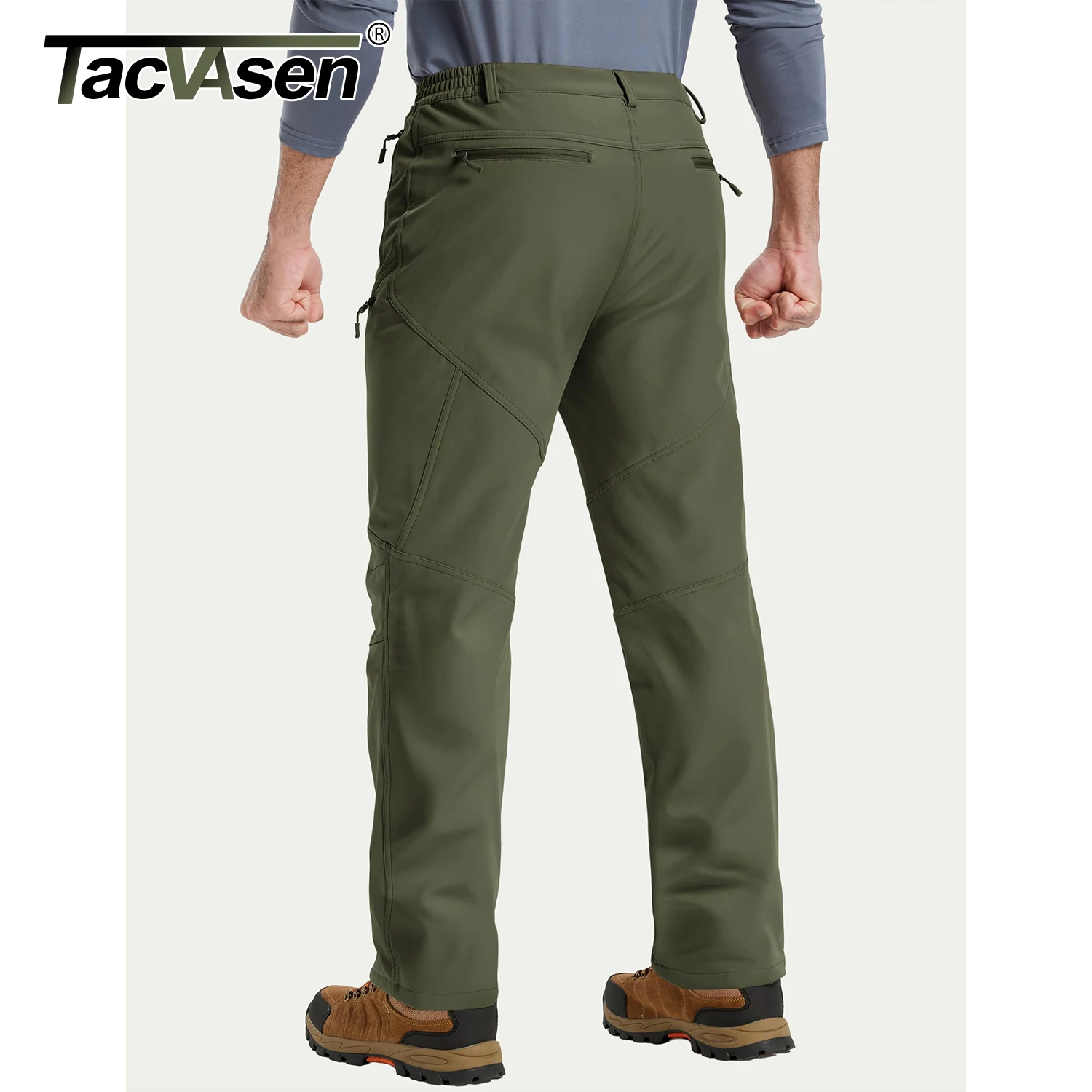 TACVASEN Men’s Winter Hiking Pants Fleece Lined Waterproof Softshell Snow Ski Insulated Work Cargo Pants with 6 Zip Pockets