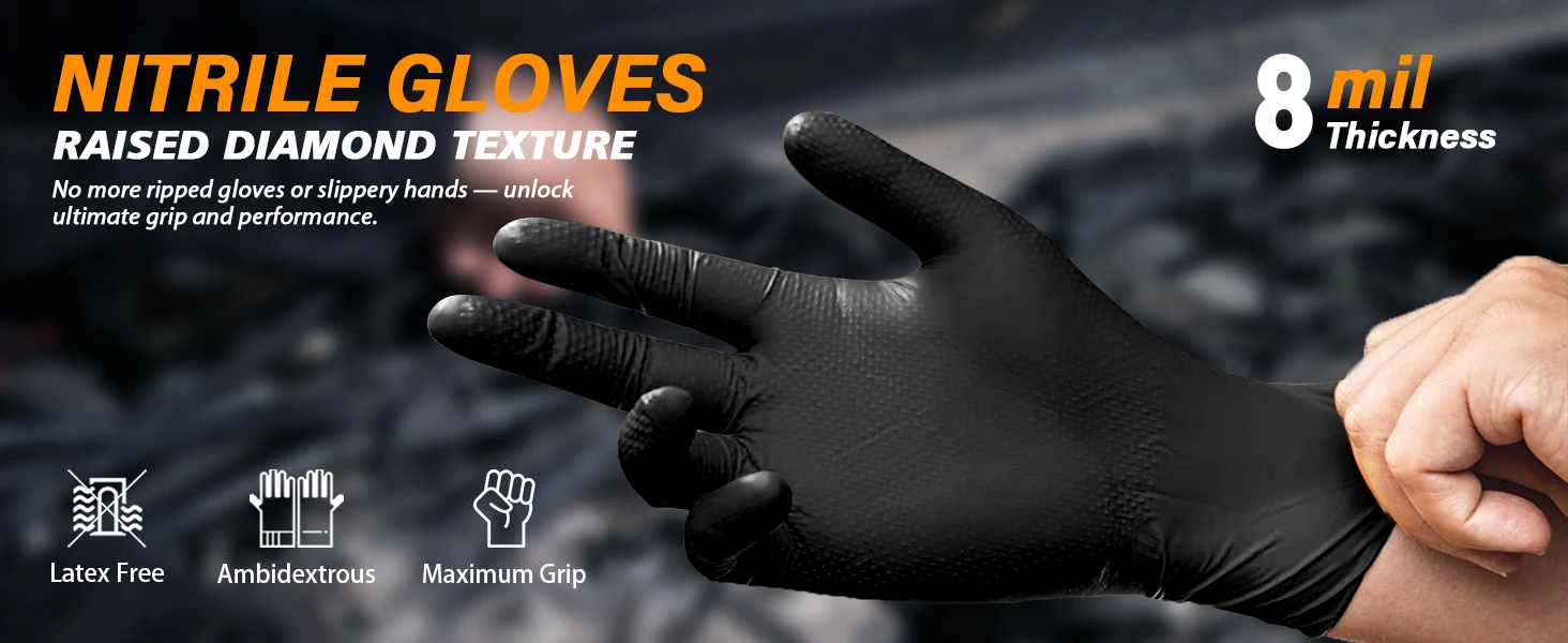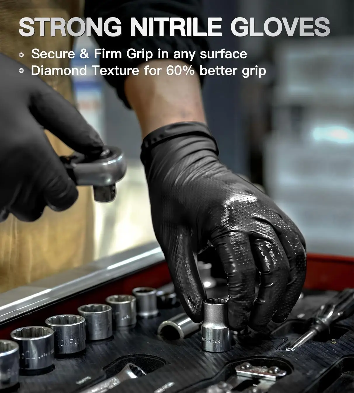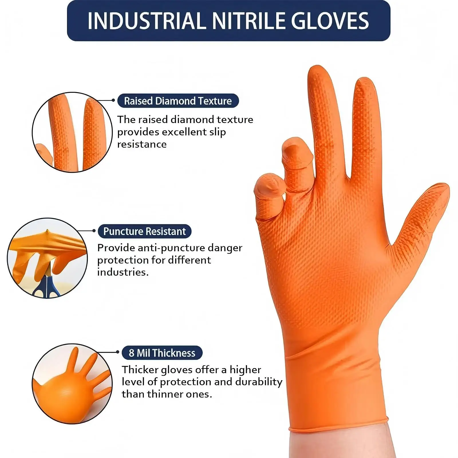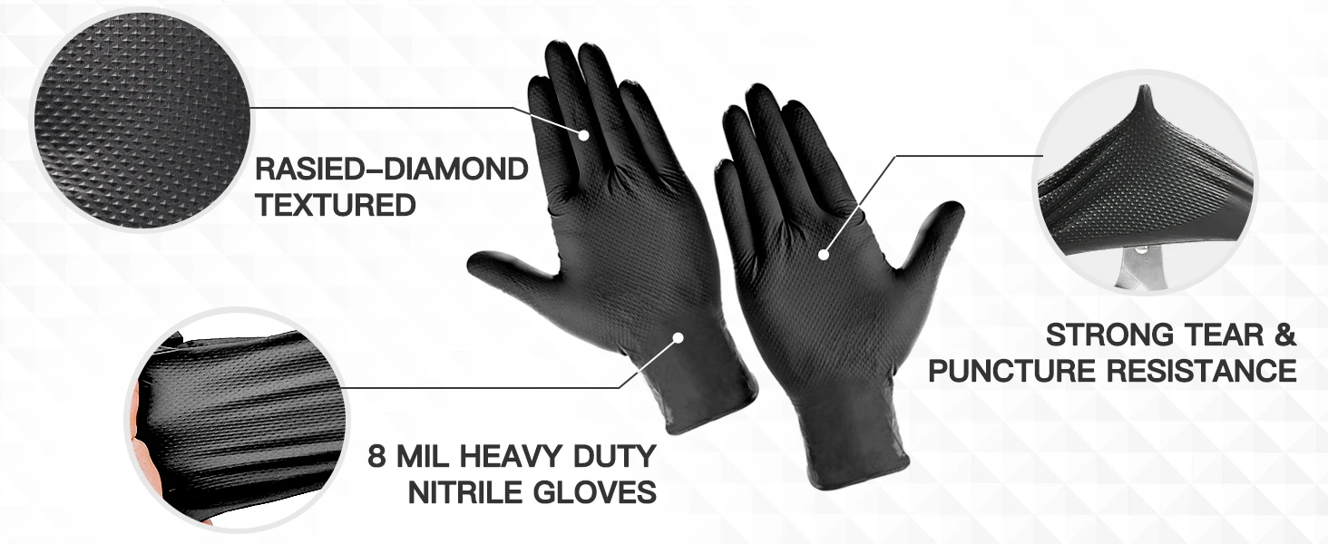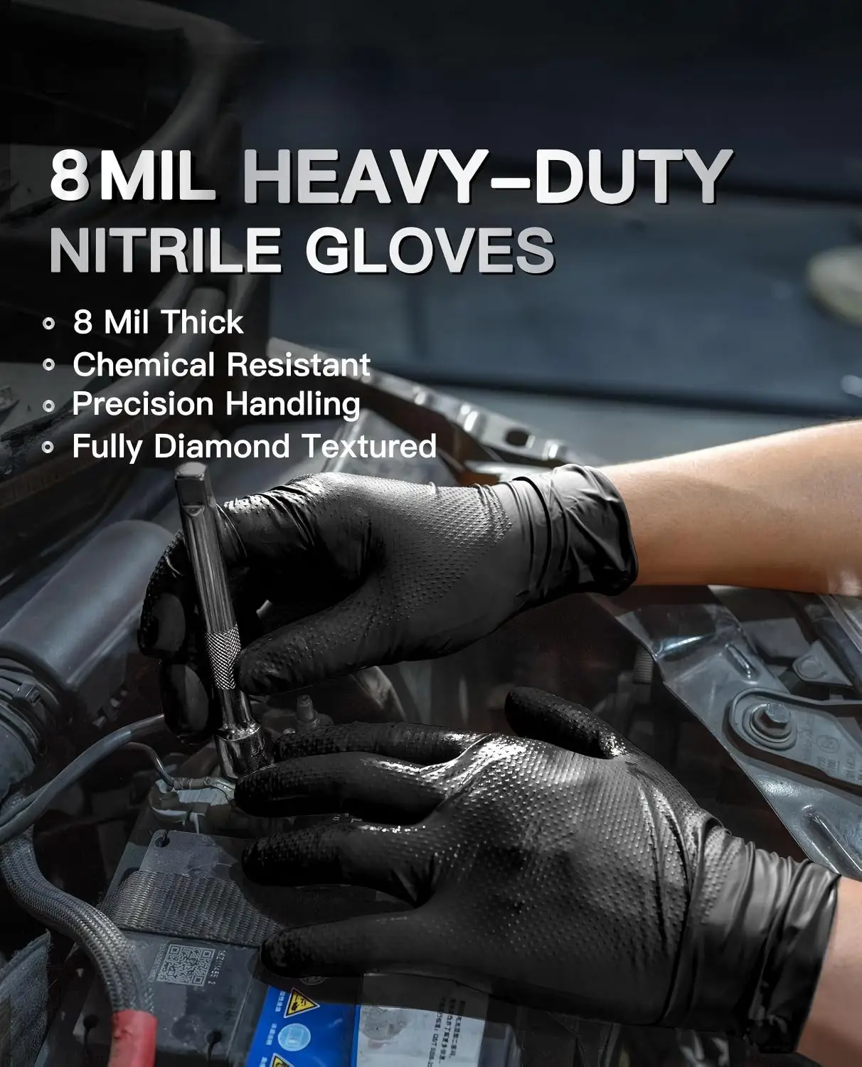 Thick Heavy Duty Nitrile Gloves 8mil Thickened Disposable Gloves with Diamond Textured Latex Free Mechanic Tattoo Auto Gloves