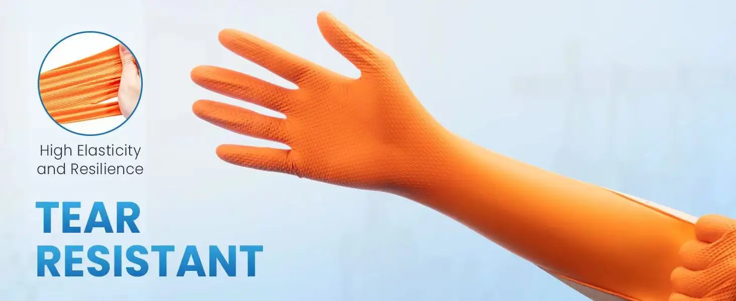 1. Anti-slip and Durable: Extra-thick 8mil nitrile gloves with superior puncture resistance against cuts, snags, and abrasions for maximum safety protection. They offer incredible stretch with no tearing or pinching. See our glove sizing chart image to determine your correct glove size.
