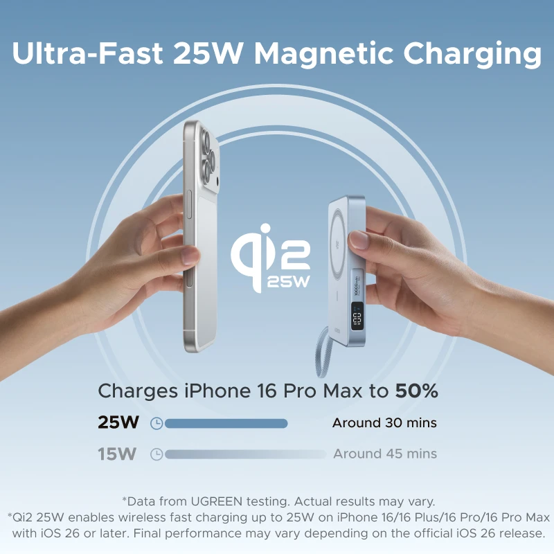 UGREEN Qi2.2 25W Power Bank Fast Charge 10000mAh Type C Cable PowerBank External Battery for iPhone 17 Pro Max for MagSafe 30W