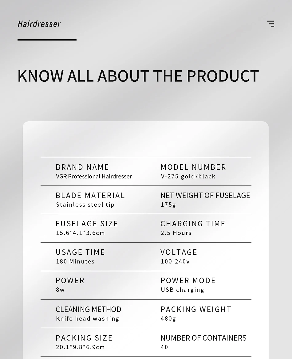 VGR Electric Hair Clipper Professional Personal Care Barber Hair Trimmer For Men Shaver LCD Rechargeable Metal Hair Clippers