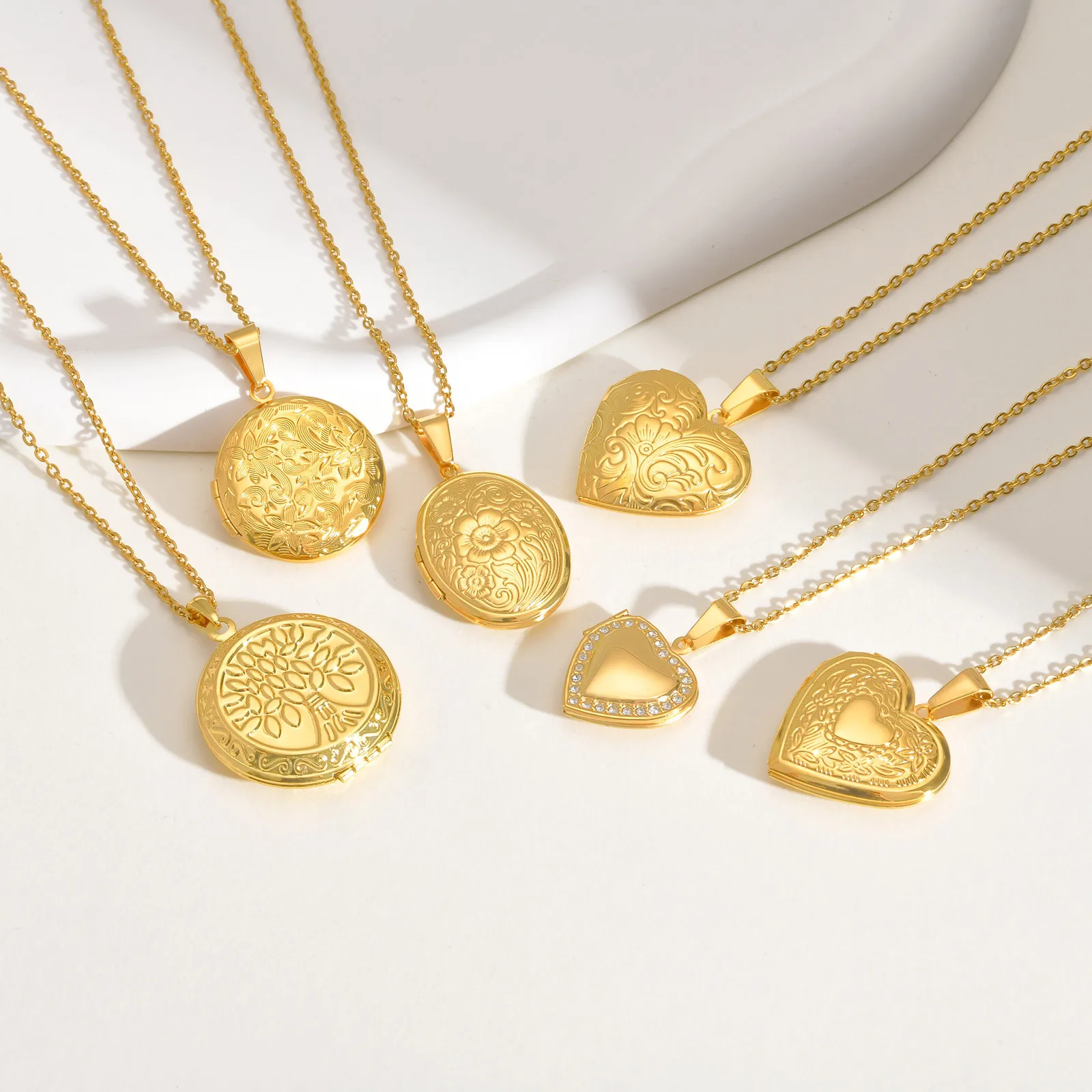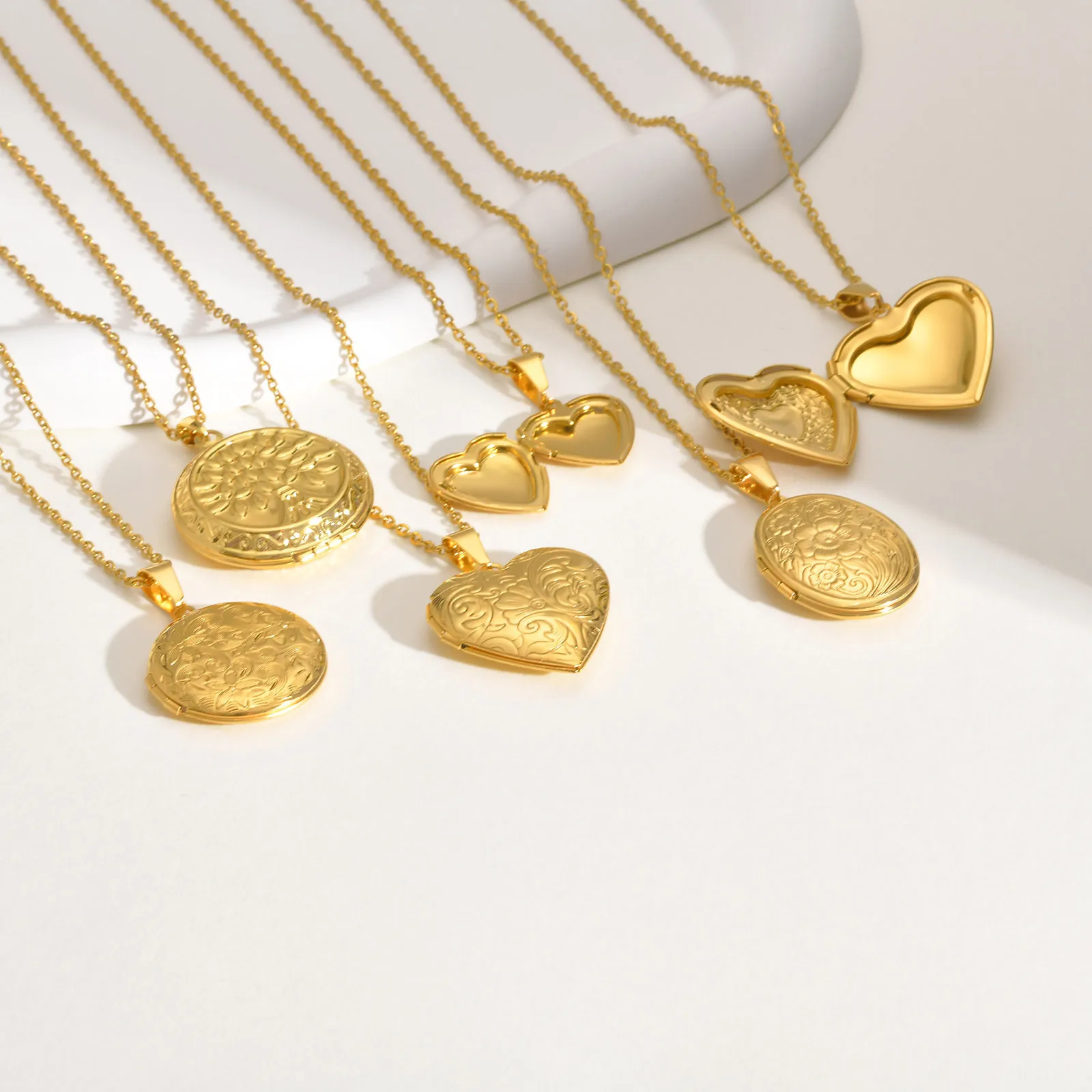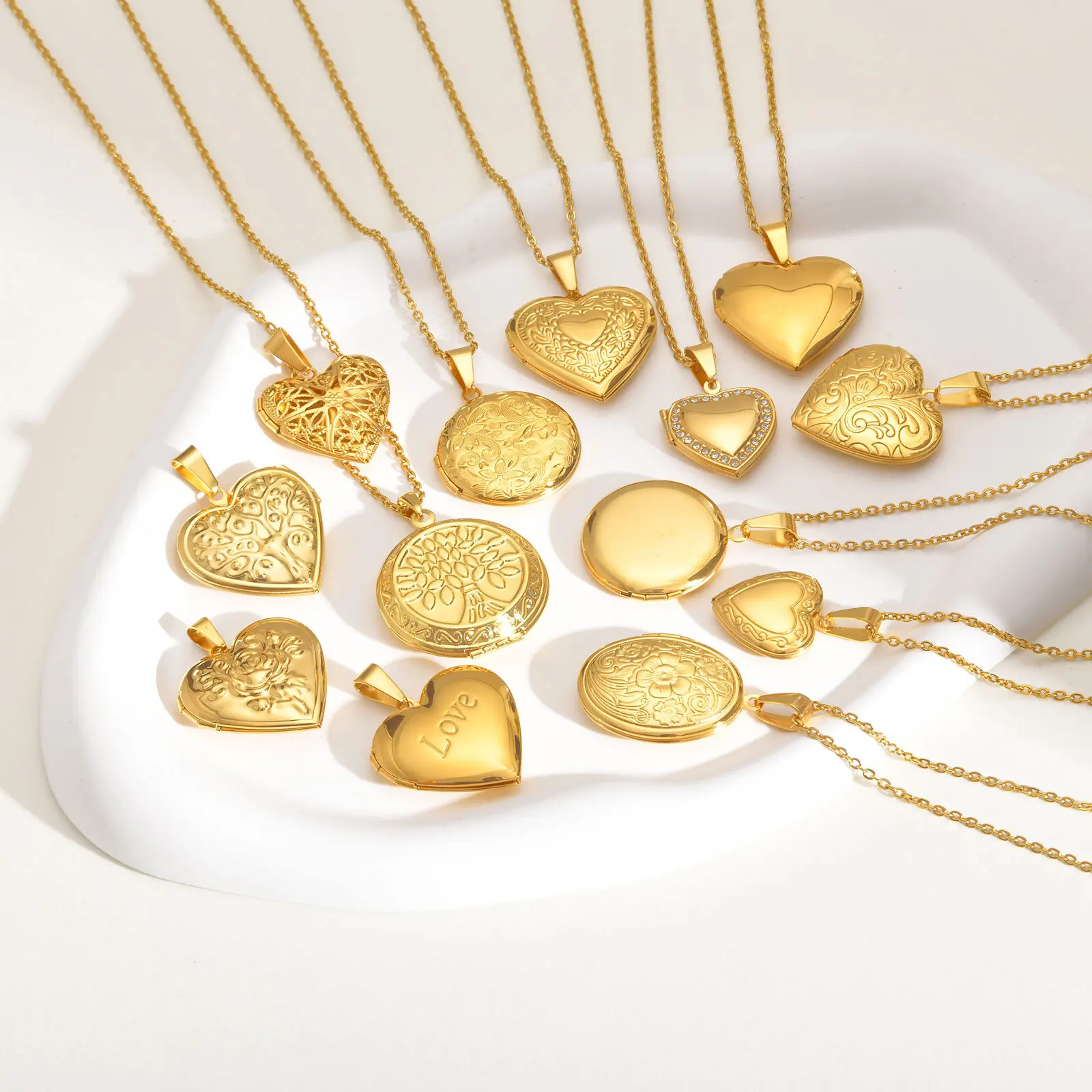 Vnox Stainless Steel Heart Locket Necklace Pendant with Photo Frame, Elegant Gold Plated Design Womens Gift
