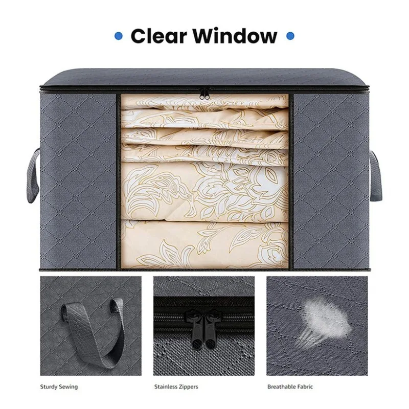 Each storage bag has a capacity of 93 liters, which is enough to accommodate bedding, quilts, blankets, seasonal clothes and toys.