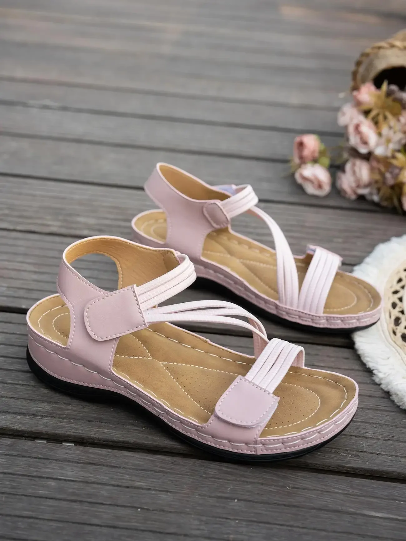 Women’s simple solid color wedge sandals, casual open toed retro thick soled sandals, comfortable thick heeled beach sandals